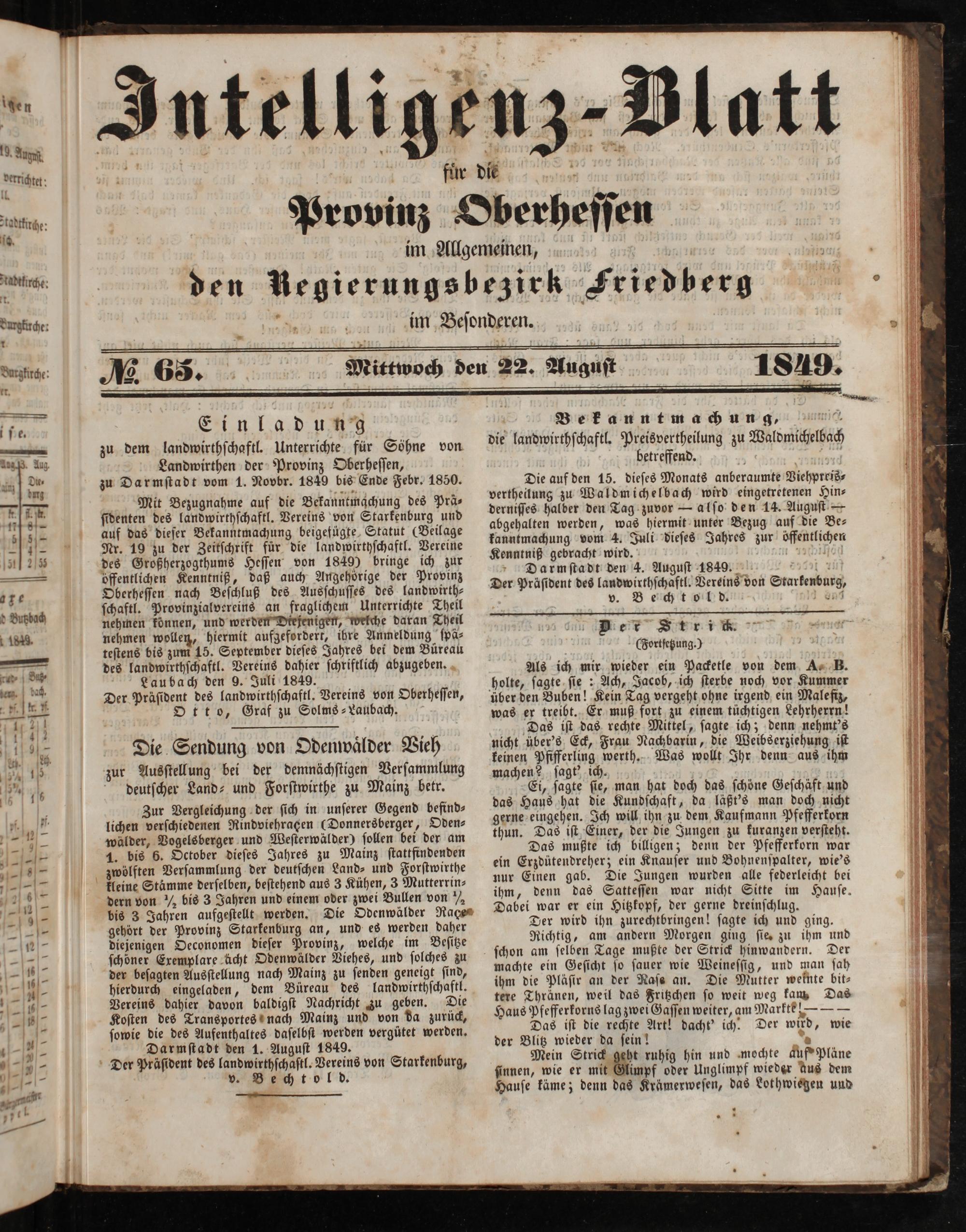 Intelligenzblatt für die Provinz Oberhessen. 1834-1834