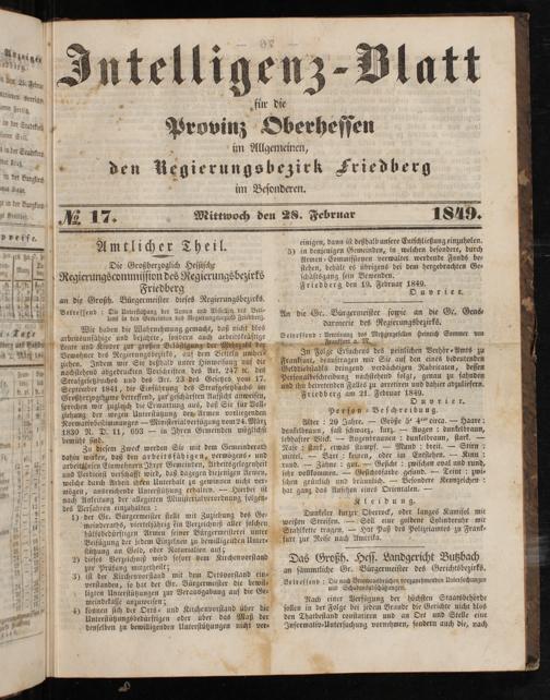 Intelligenzblatt für die Provinz Oberhessen. 1834-1834