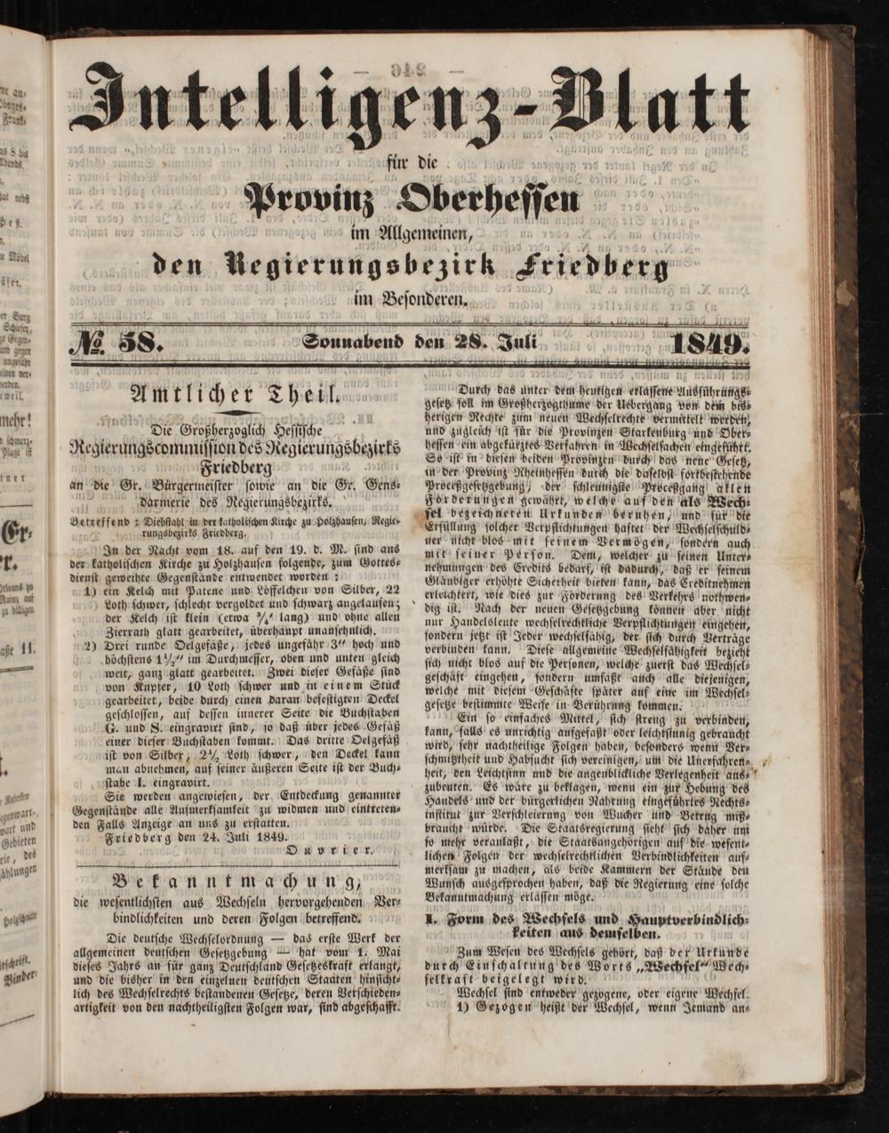 Intelligenzblatt für die Provinz Oberhessen. 1834-1834