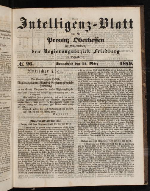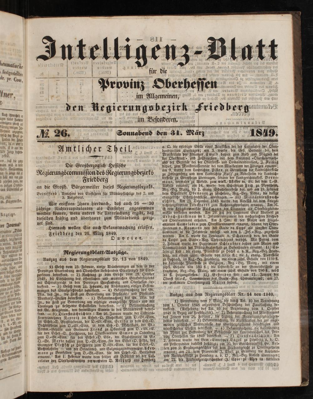 Intelligenzblatt für die Provinz Oberhessen. 1834-1834