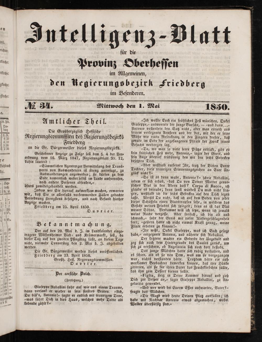 Intelligenzblatt für die Provinz Oberhessen. 1834-1834