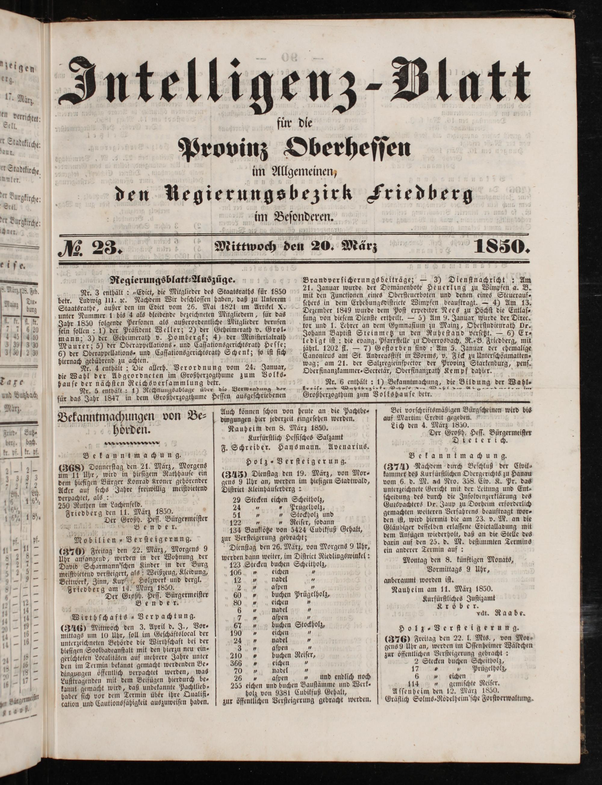 Intelligenzblatt für die Provinz Oberhessen. 1834-1834