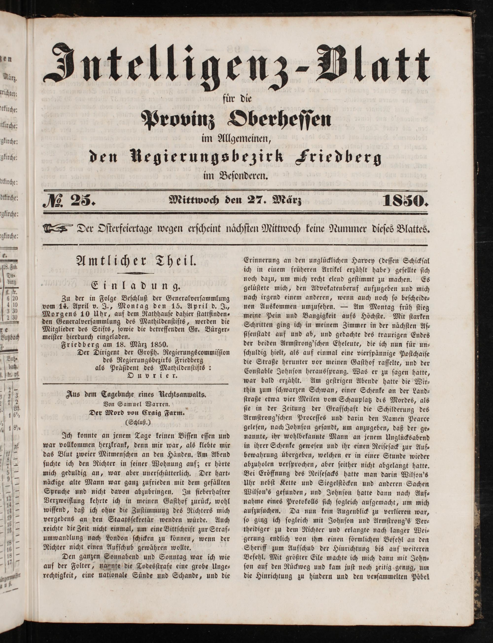 Intelligenzblatt für die Provinz Oberhessen. 1834-1834