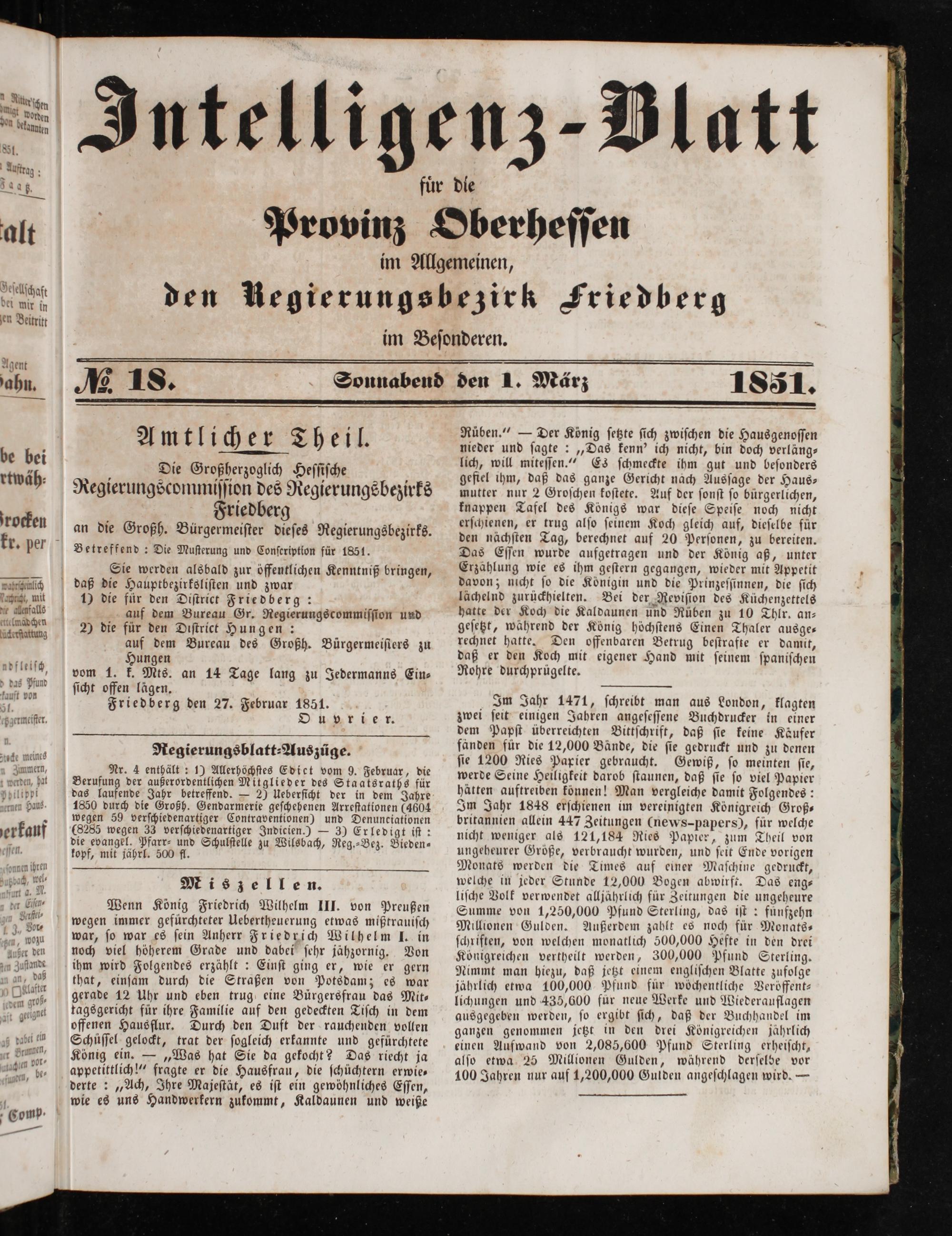 Intelligenzblatt für die Provinz Oberhessen. 1834-1834