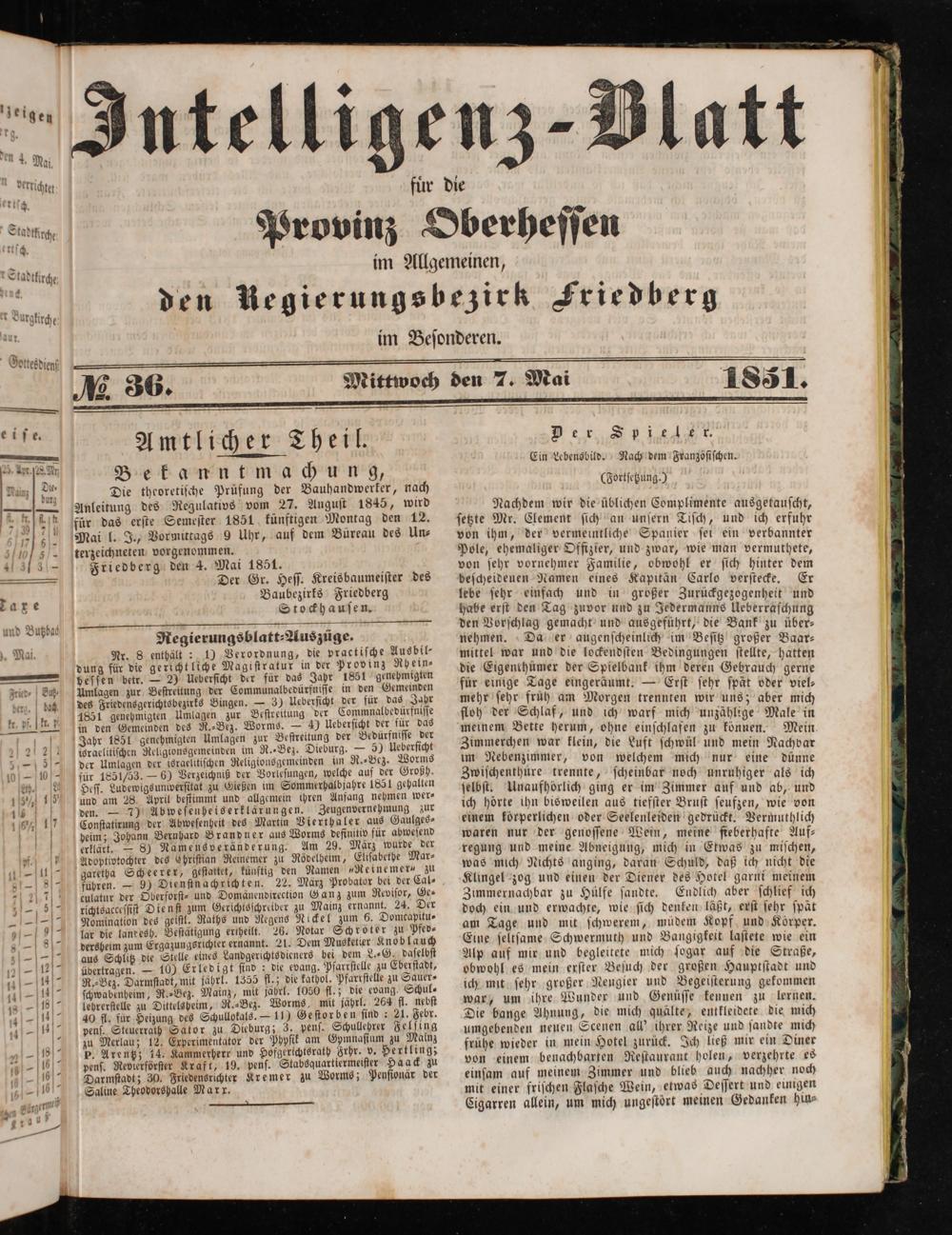 Intelligenzblatt für die Provinz Oberhessen. 1834-1834