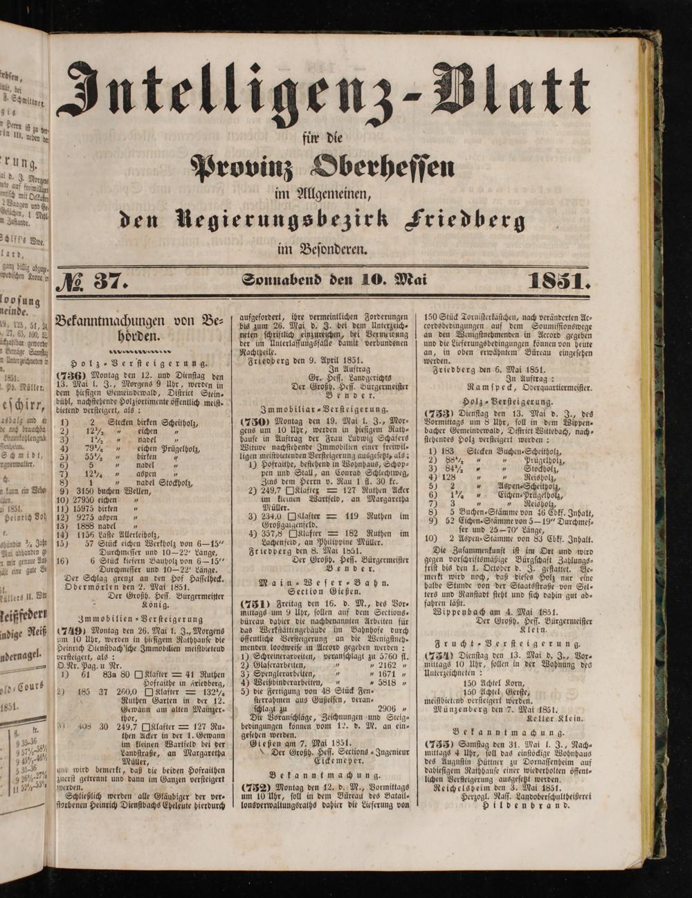 Intelligenzblatt für die Provinz Oberhessen. 1834-1834
