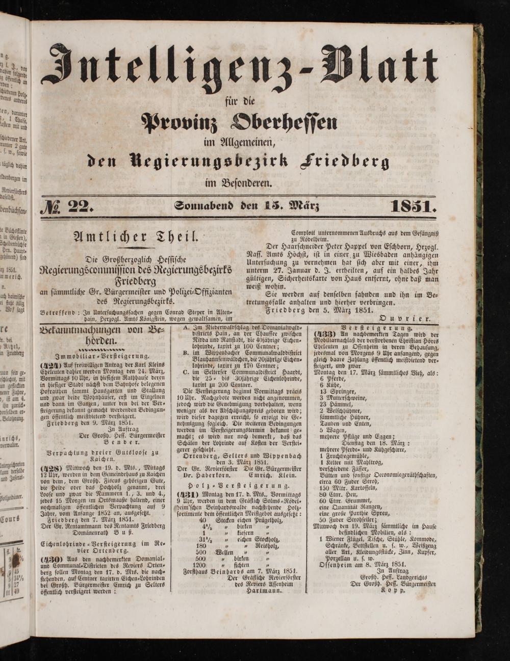 Intelligenzblatt für die Provinz Oberhessen. 1834-1834