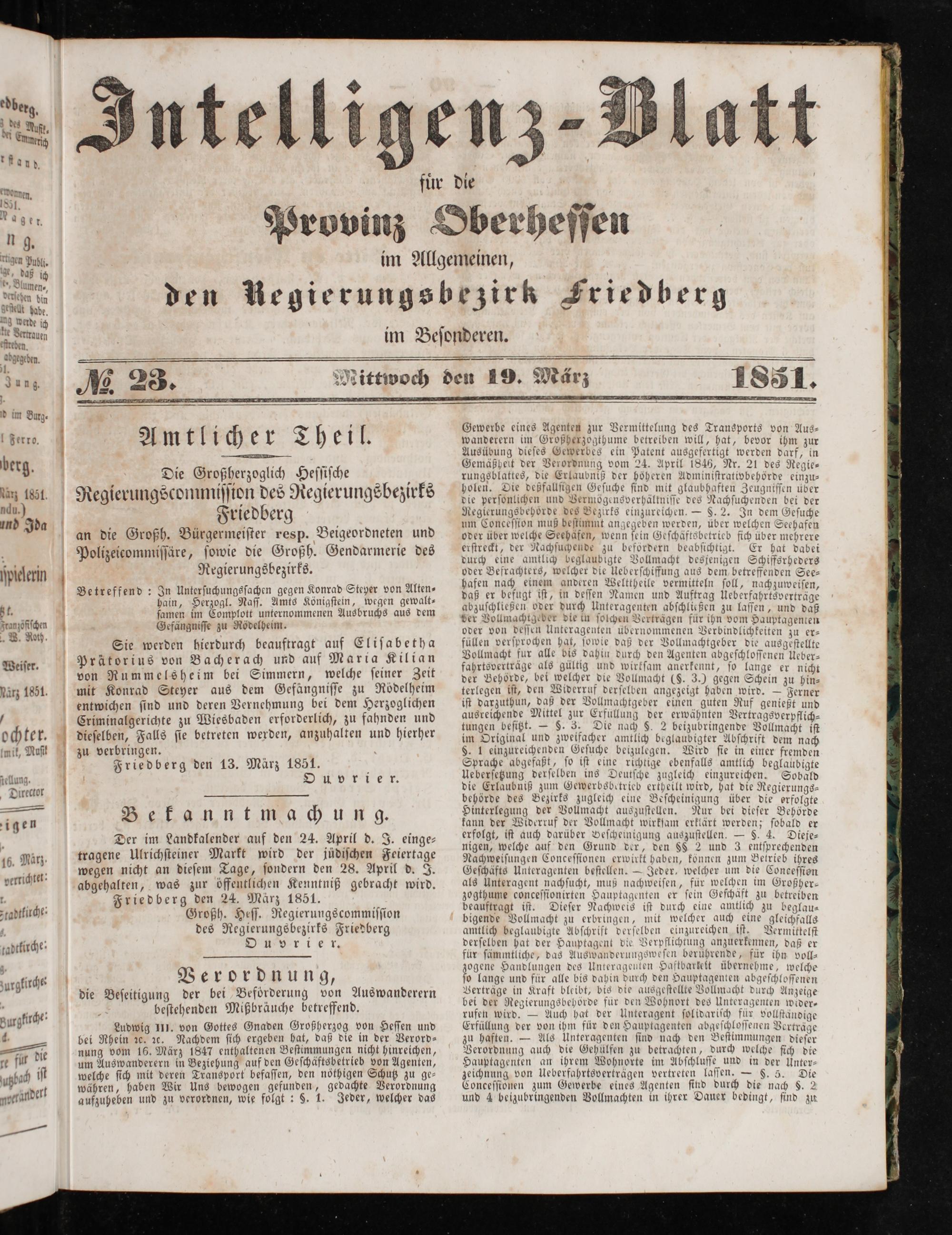 Intelligenzblatt für die Provinz Oberhessen. 1834-1834