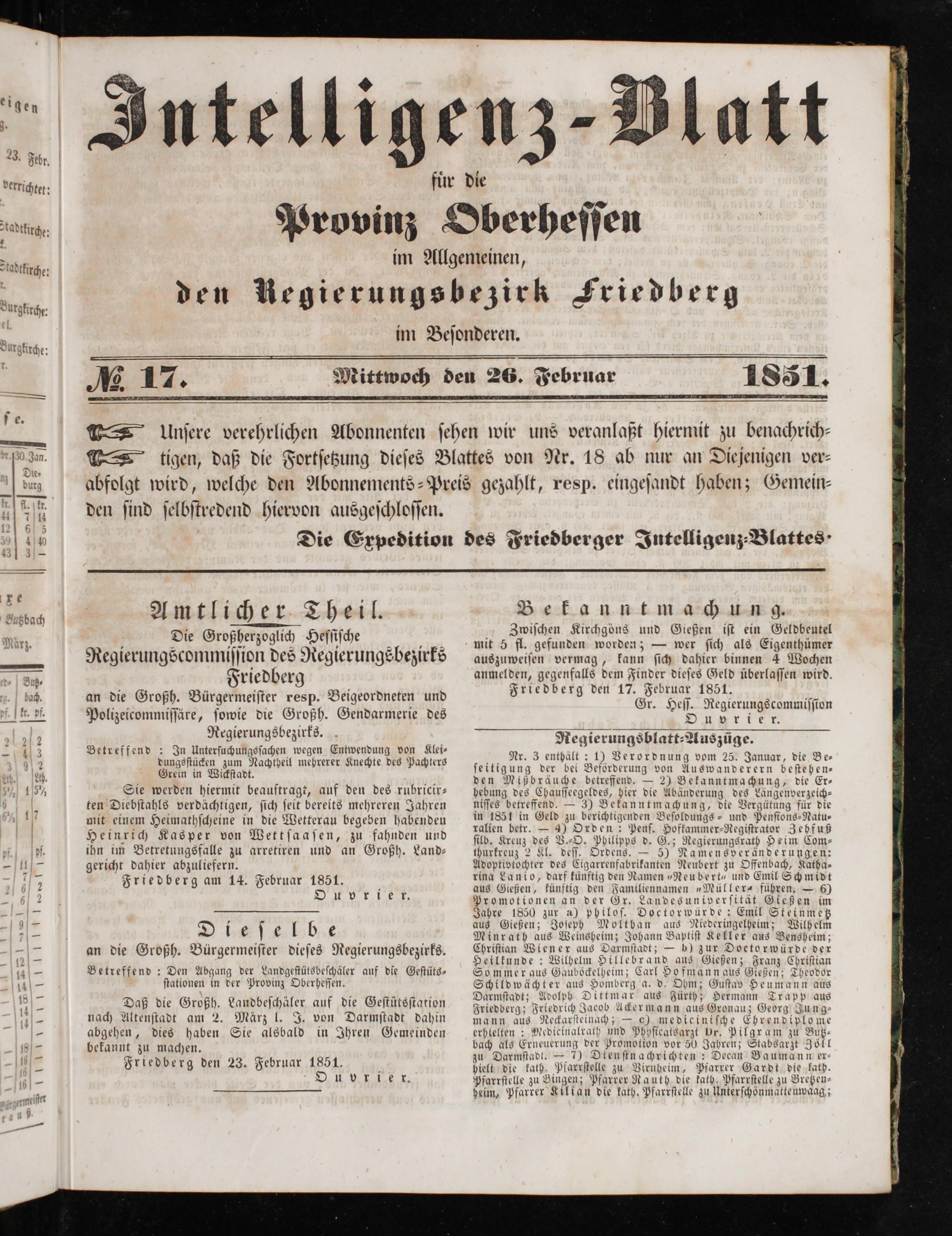 Intelligenzblatt für die Provinz Oberhessen. 1834-1834