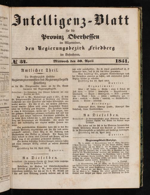 Intelligenzblatt für die Provinz Oberhessen. 1834-1834