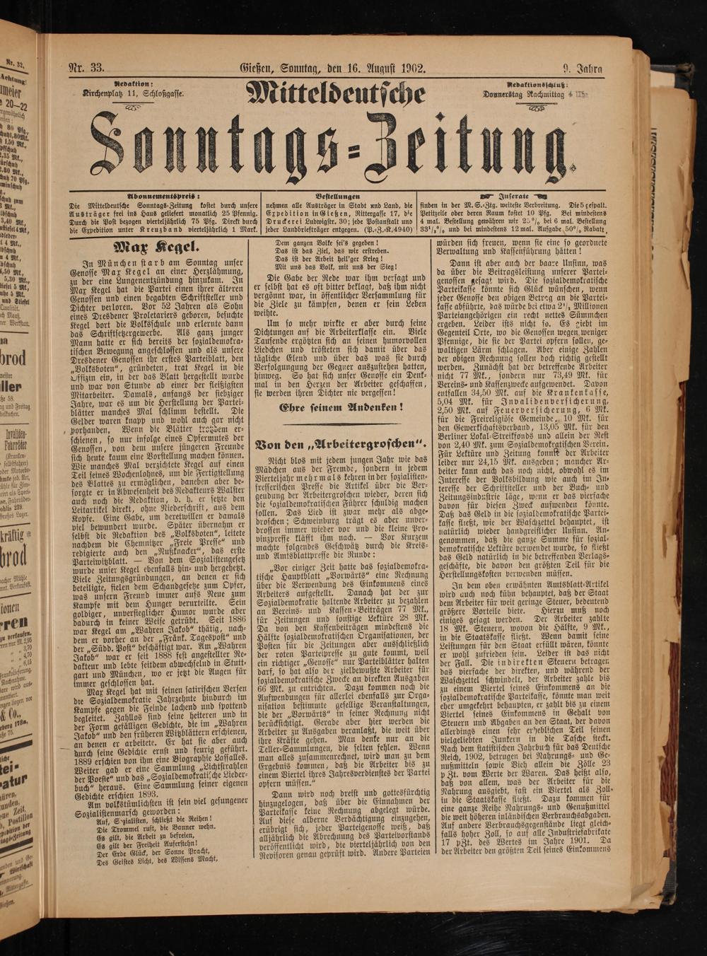 Mitteldeutsche Sonntagszeitung. 1899-1906
