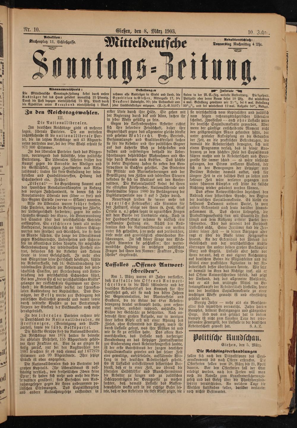 Mitteldeutsche Sonntagszeitung. 1899-1906