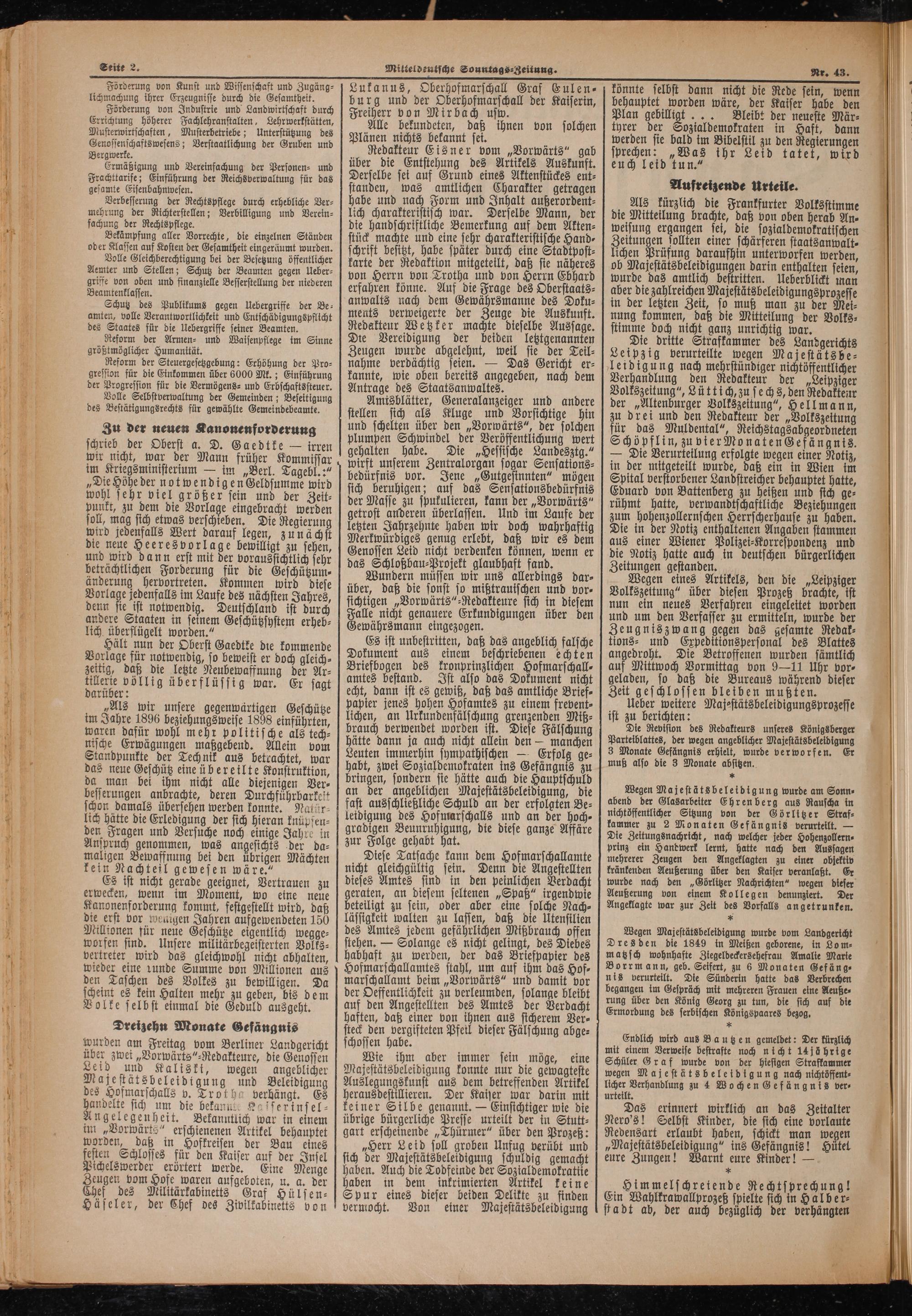 Mitteldeutsche Sonntagszeitung. 1899-1906