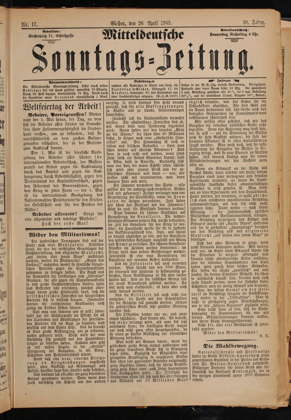Mitteldeutsche Sonntagszeitung. 1899-1906