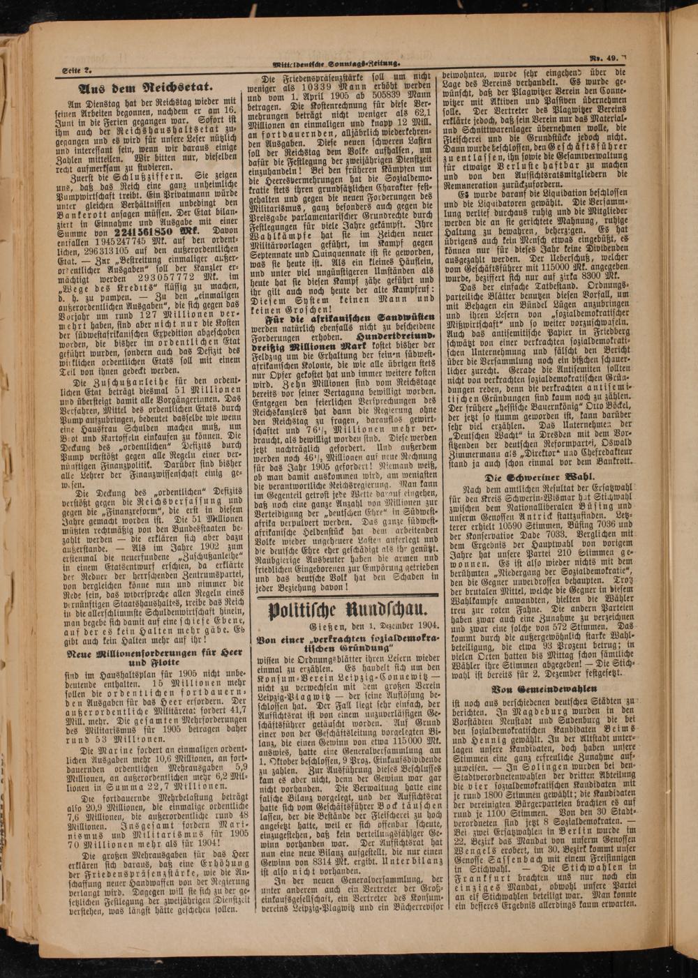 Mitteldeutsche Sonntagszeitung. 1899-1906
