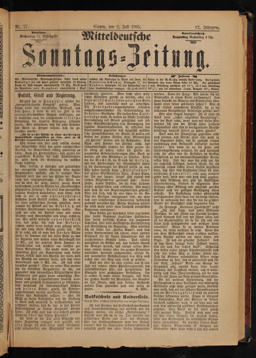 Mitteldeutsche Sonntagszeitung. 1899-1906