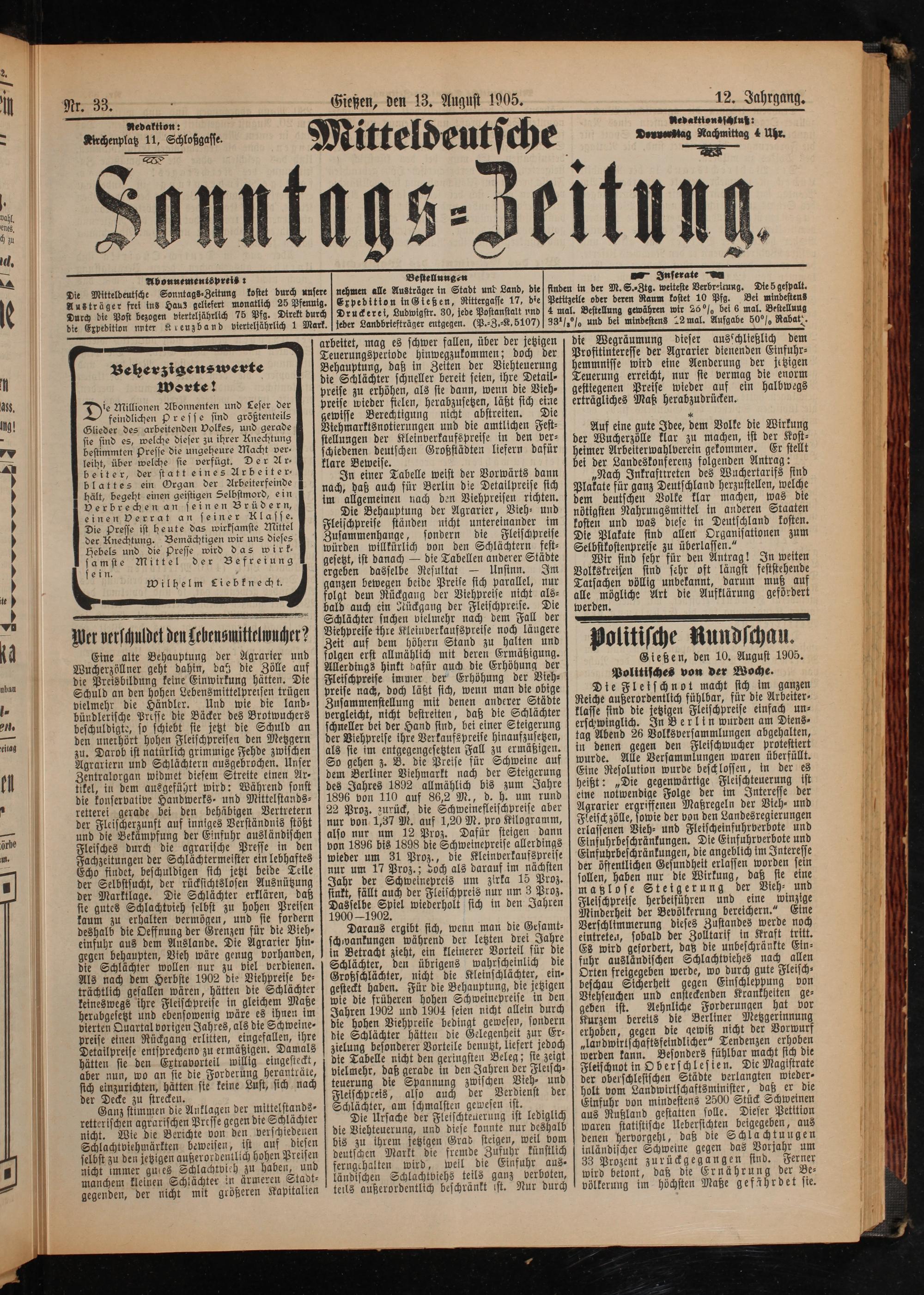 Mitteldeutsche Sonntagszeitung. 1899-1906