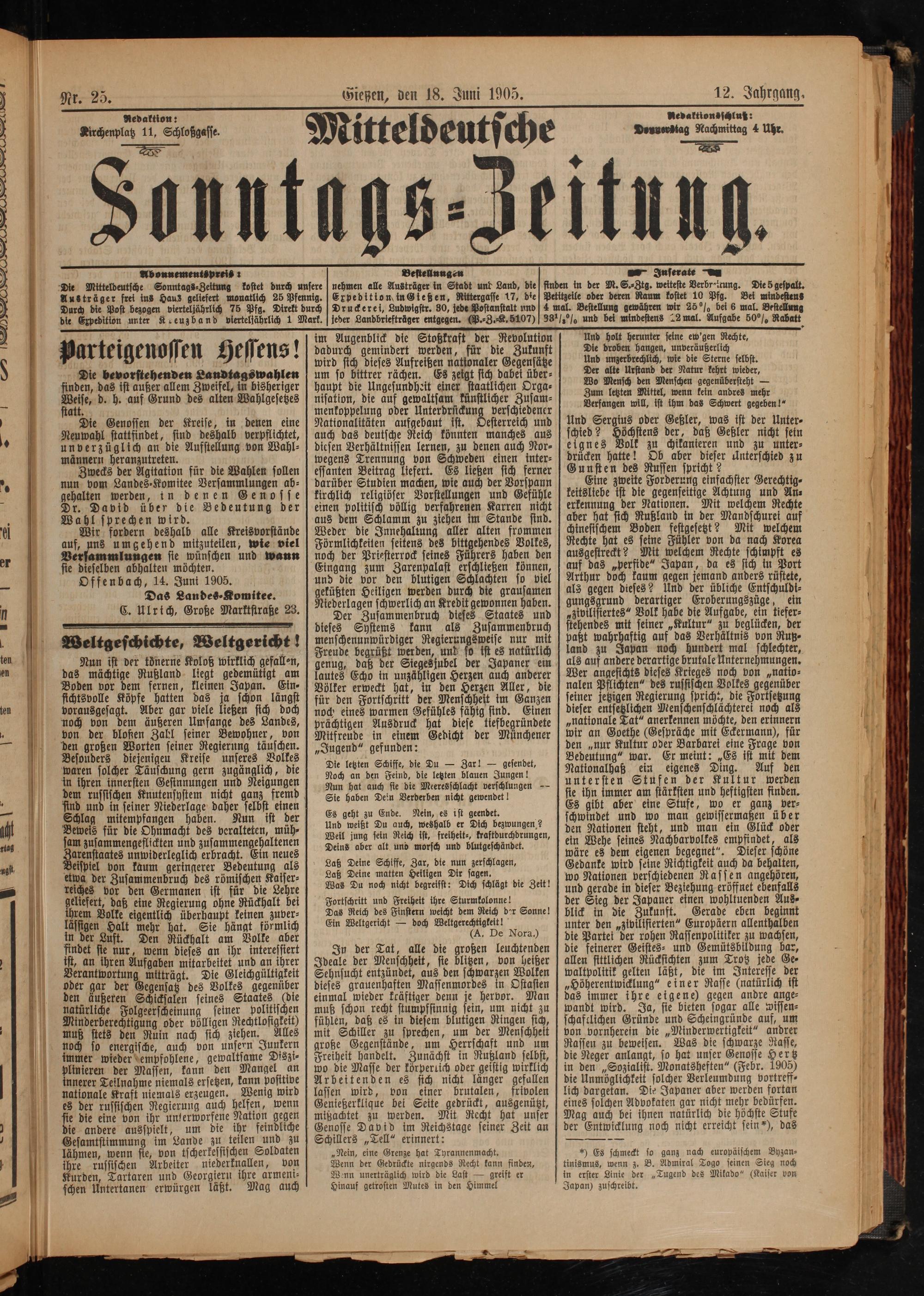 Mitteldeutsche Sonntagszeitung. 1899-1906