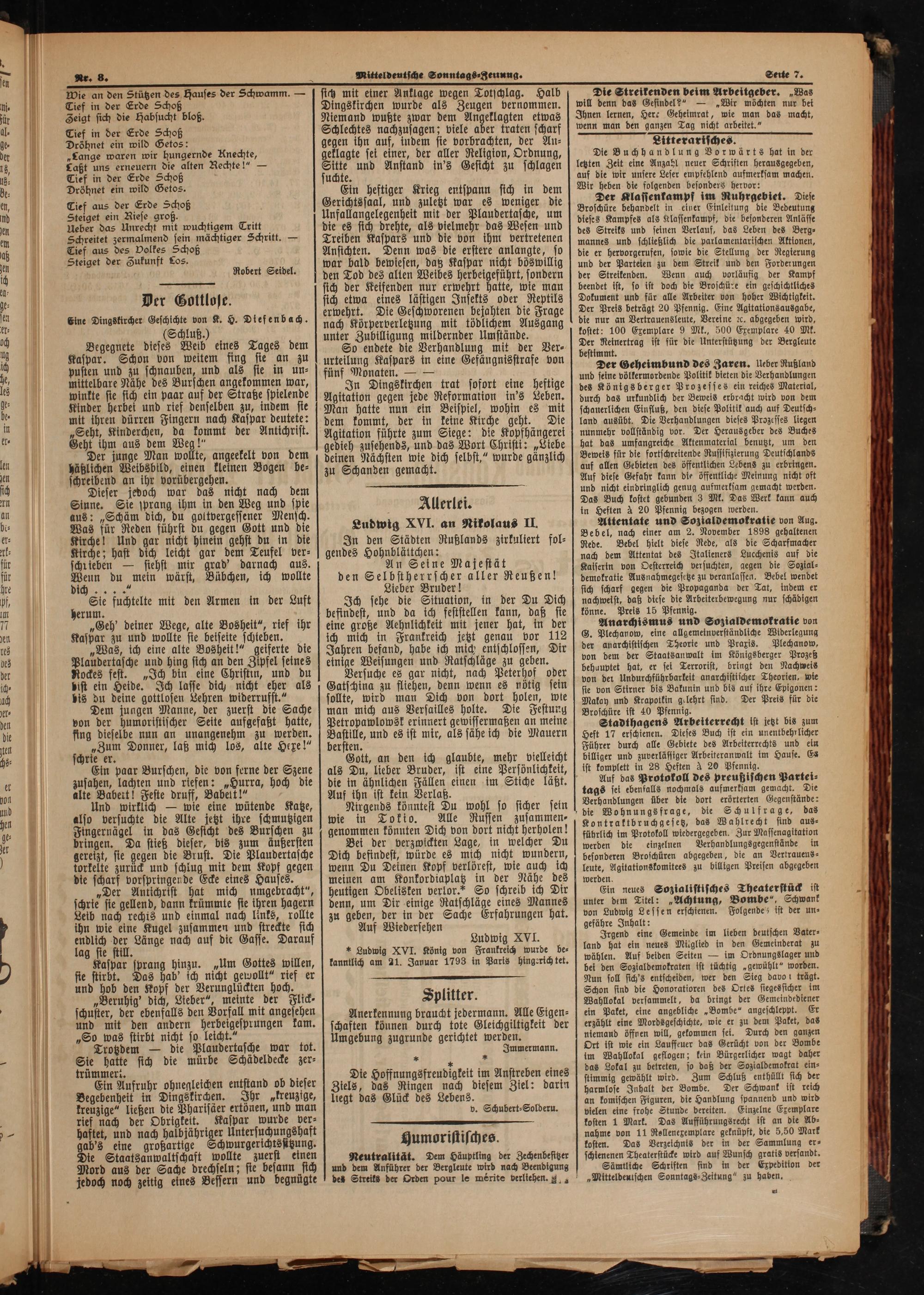 Mitteldeutsche Sonntagszeitung. 1899-1906