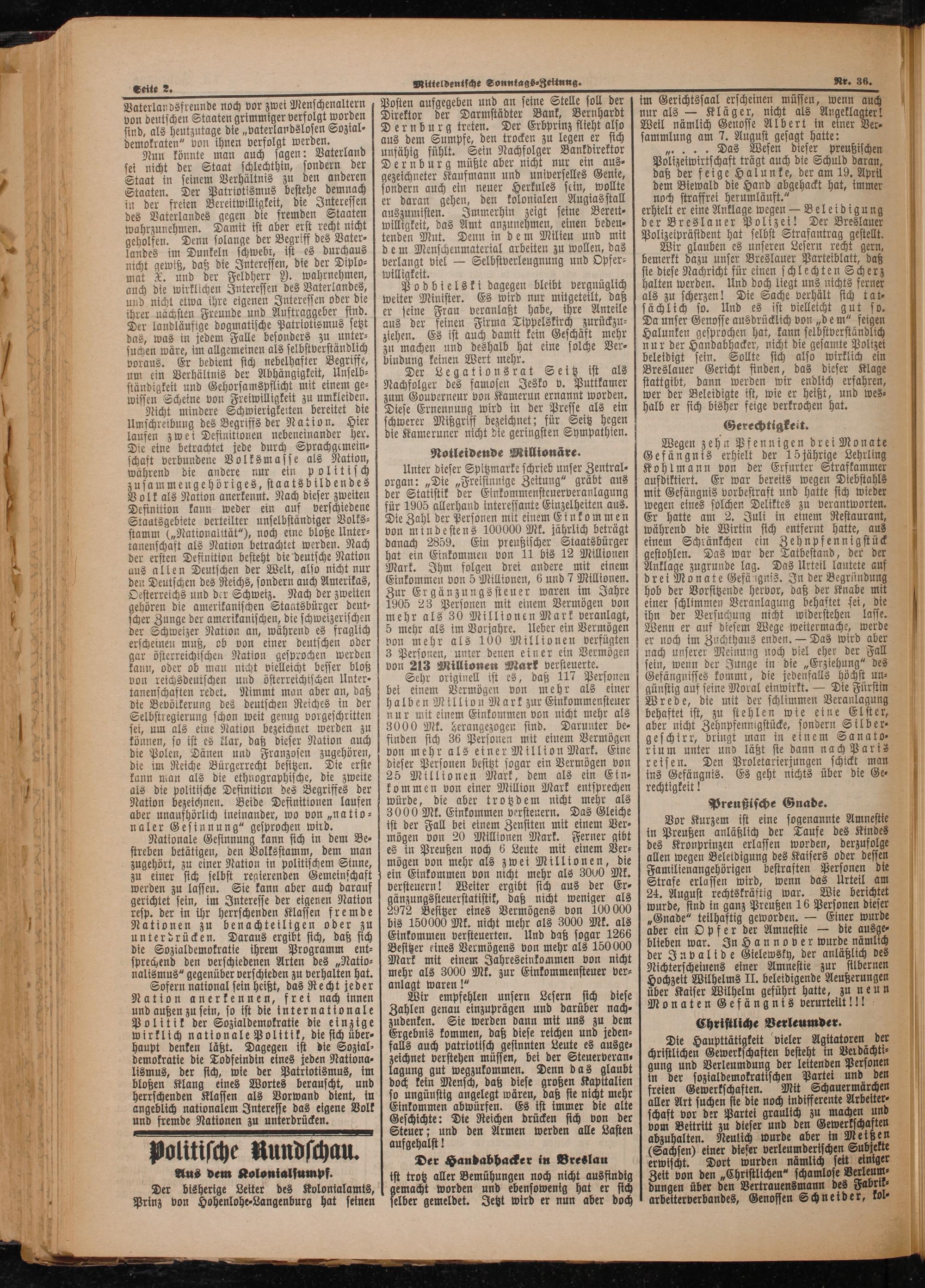 Mitteldeutsche Sonntagszeitung. 1899-1906
