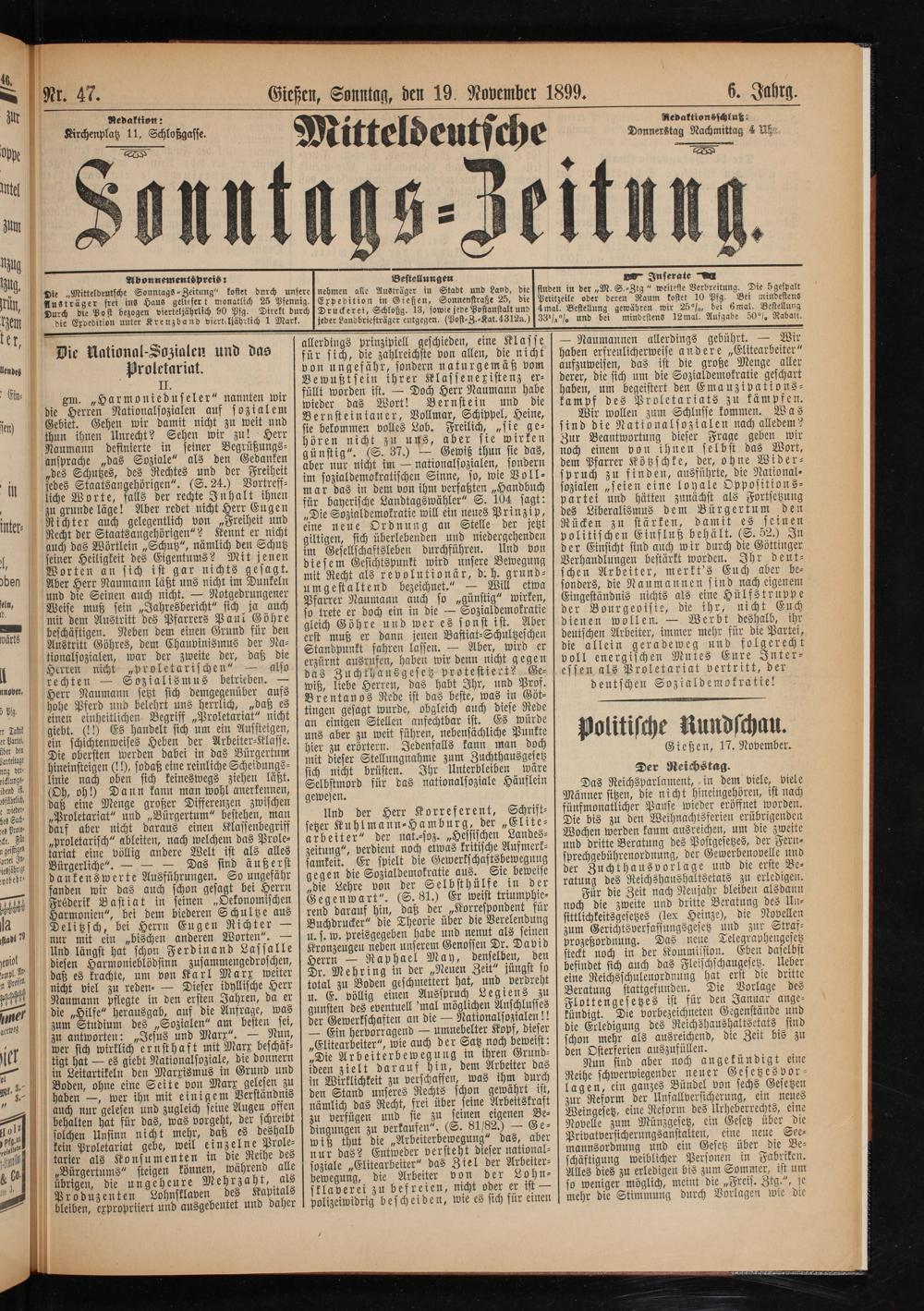 Mitteldeutsche Sonntagszeitung. 1899-1906