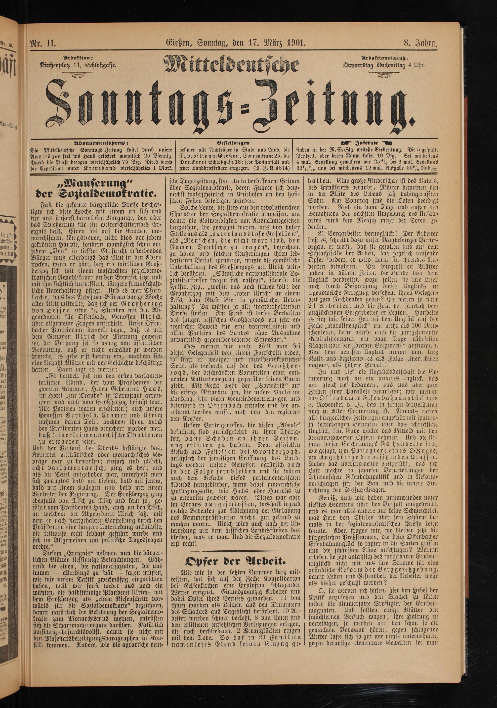 Mitteldeutsche Sonntagszeitung. 1899-1906