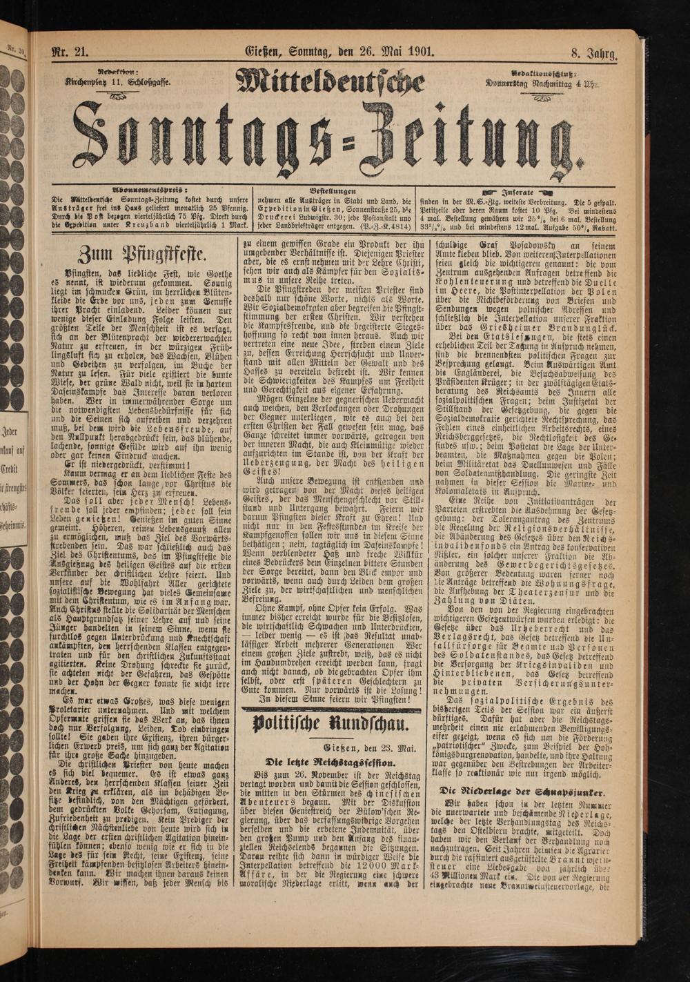 Mitteldeutsche Sonntagszeitung. 1899-1906