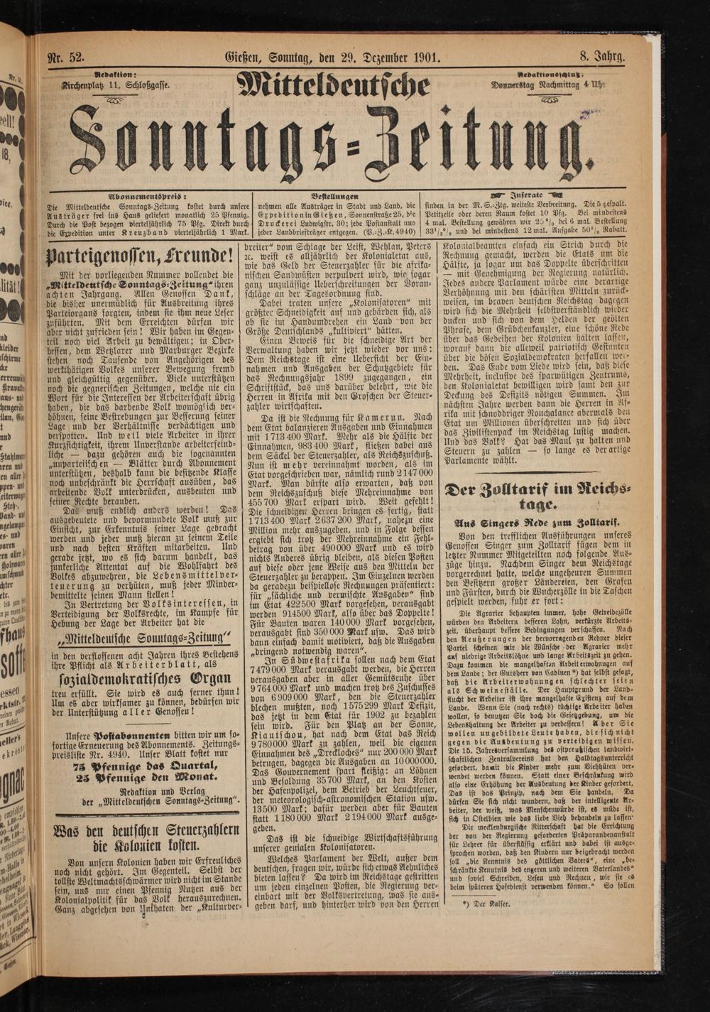 Mitteldeutsche Sonntagszeitung. 1899-1906
