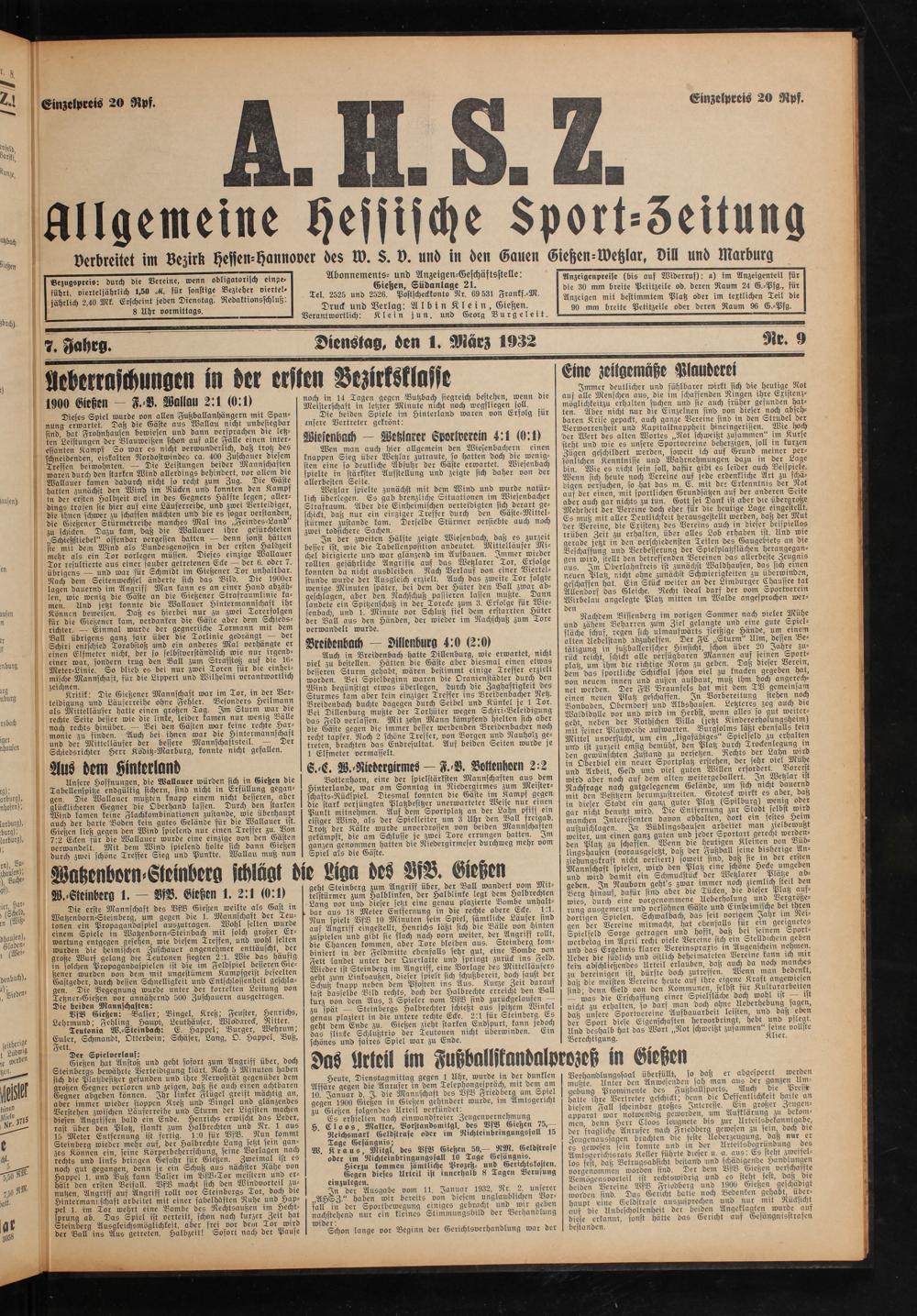 Allgemeine Hessische Sport-Zeitung. 1926-1933