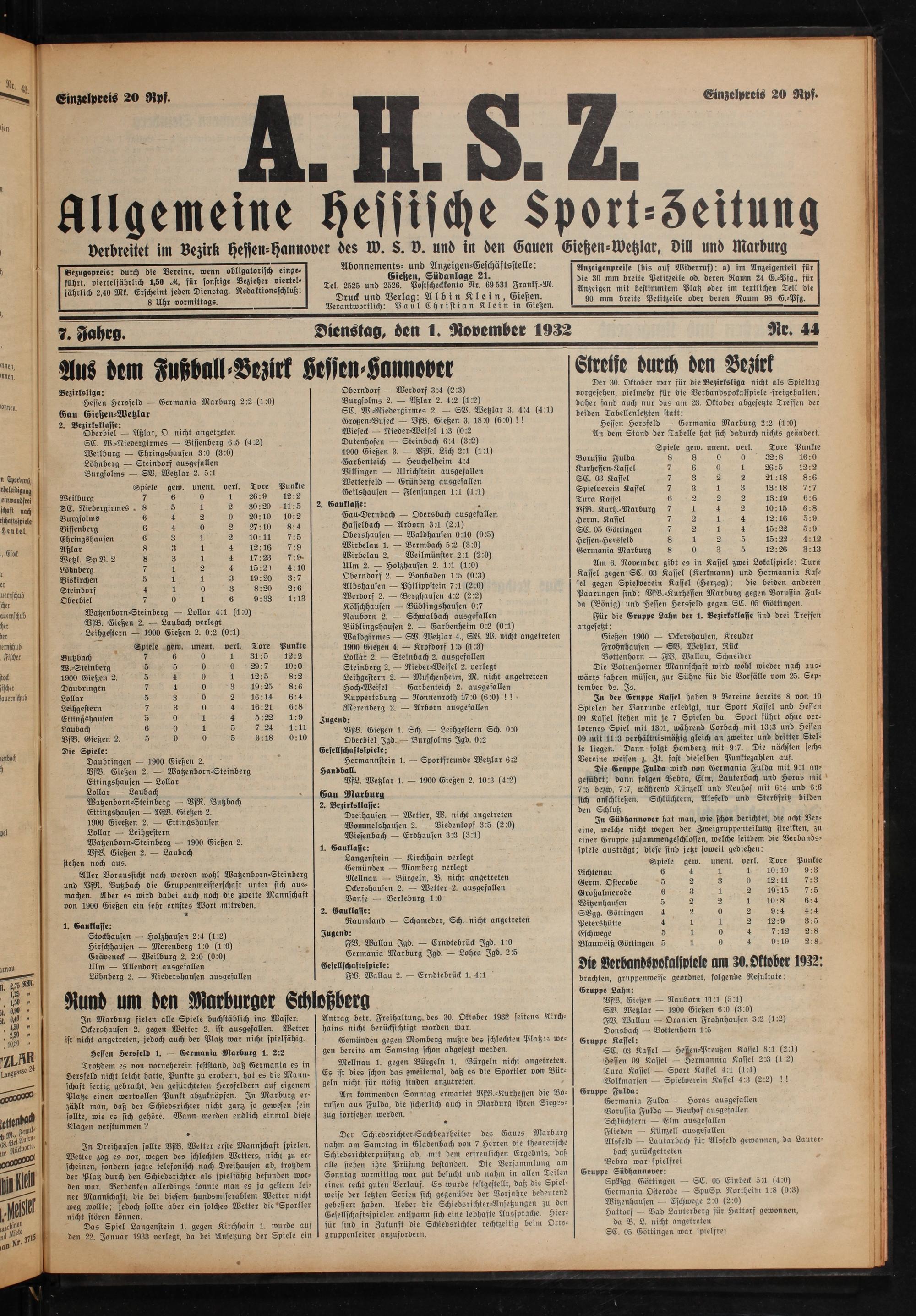 Allgemeine Hessische Sport-Zeitung. 1926-1933