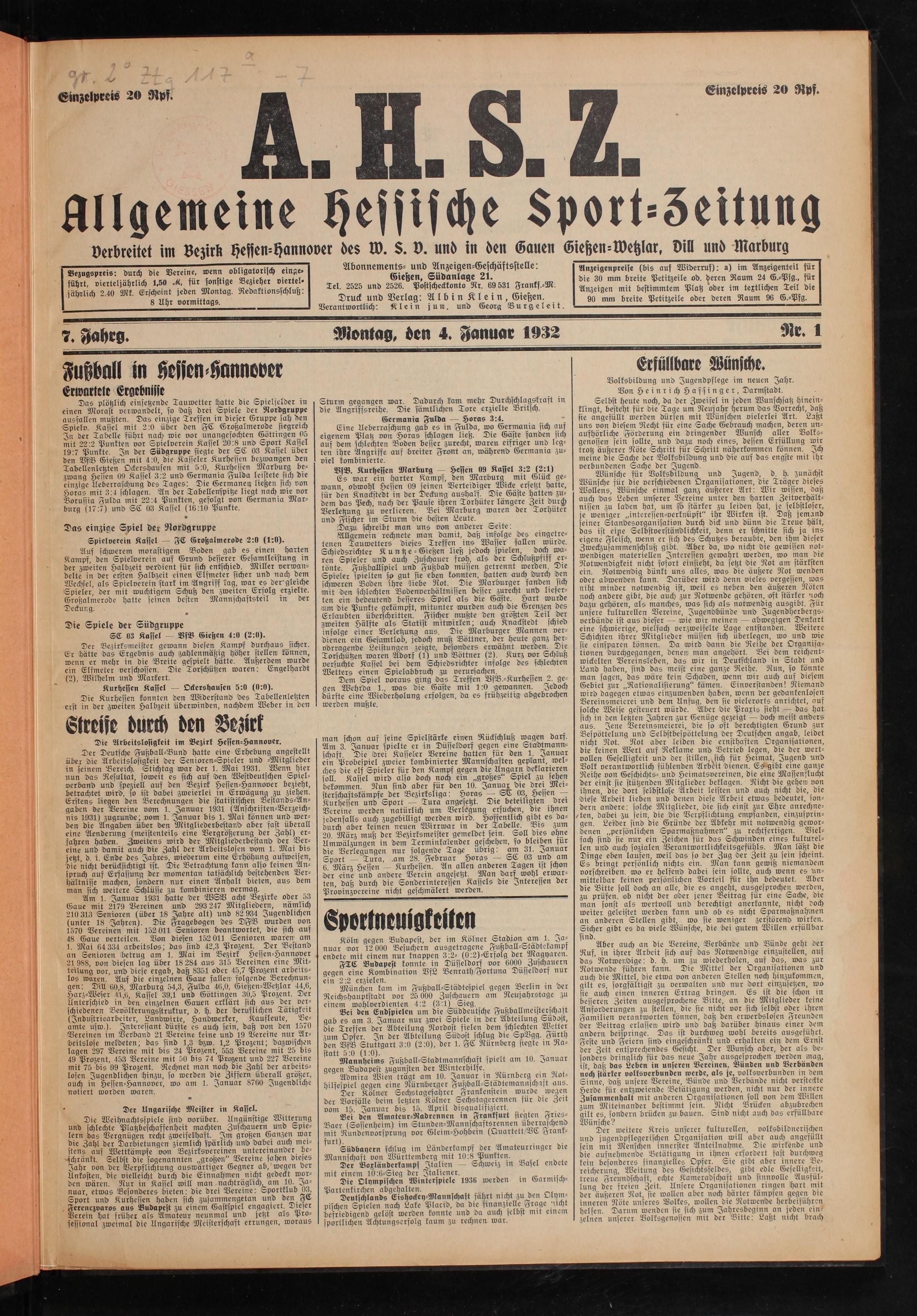 Allgemeine Hessische Sport-Zeitung. 1926-1933