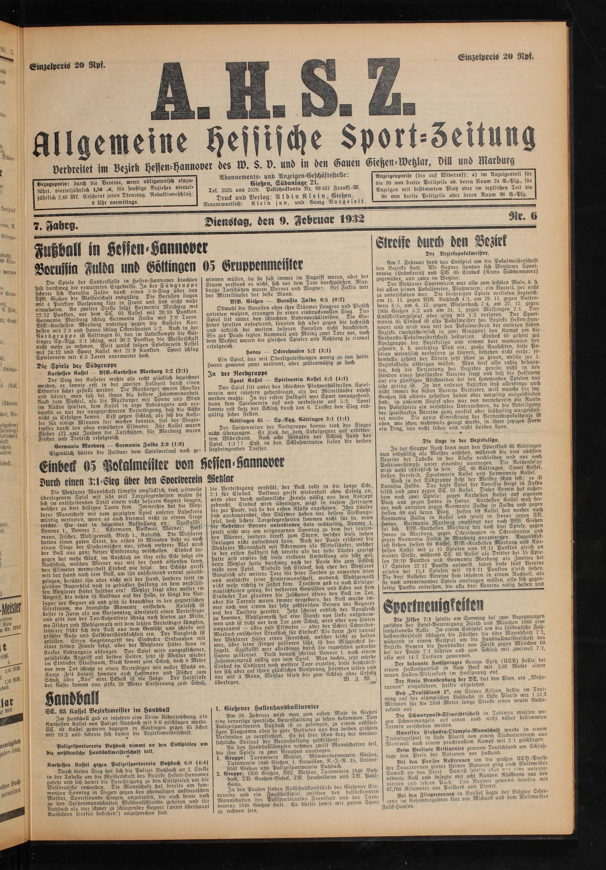 Allgemeine Hessische Sport-Zeitung. 1926-1933