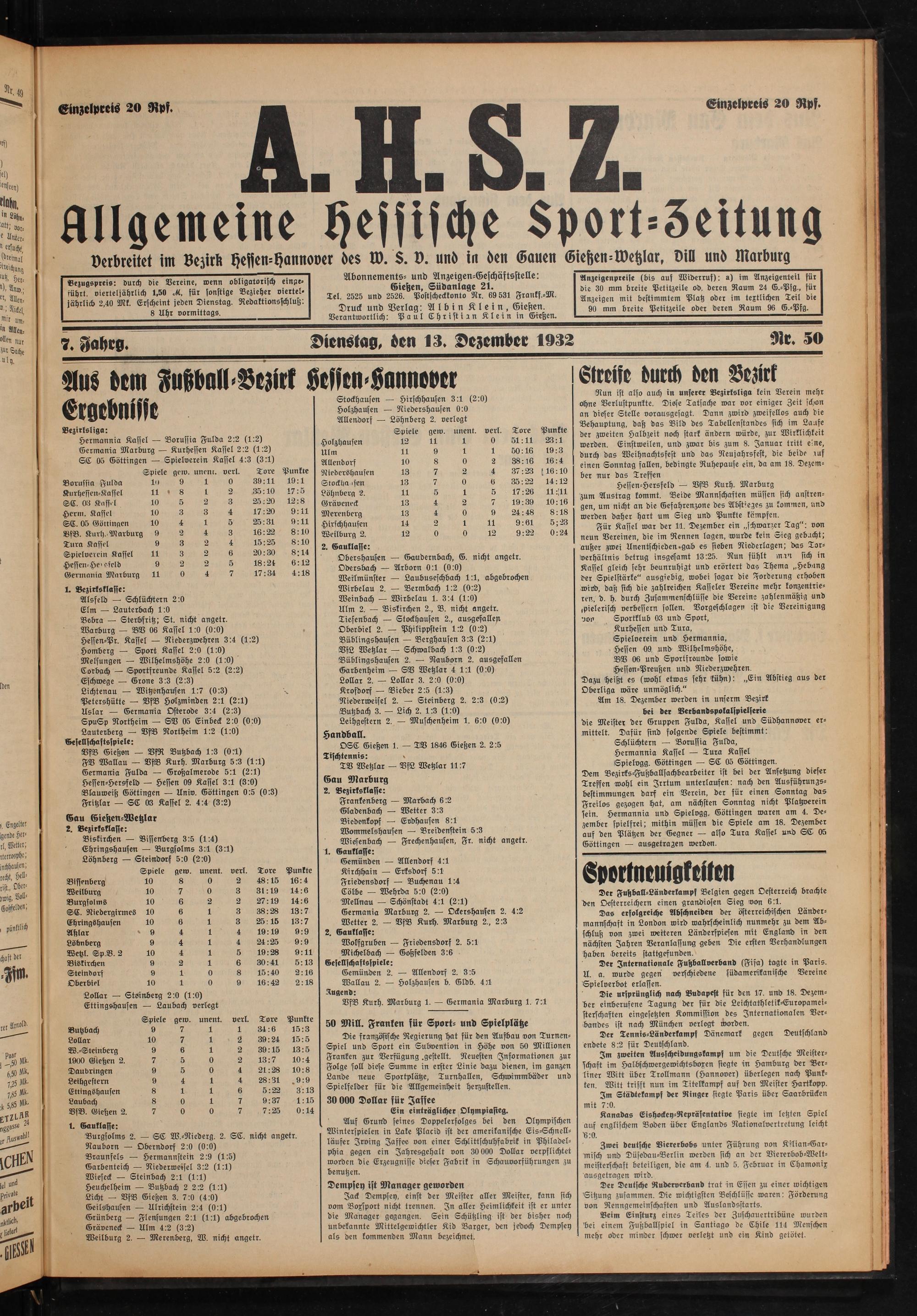 Allgemeine Hessische Sport-Zeitung. 1926-1933