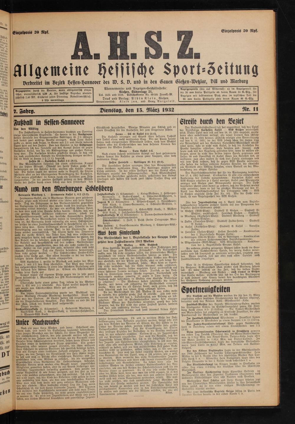 Allgemeine Hessische Sport-Zeitung. 1926-1933