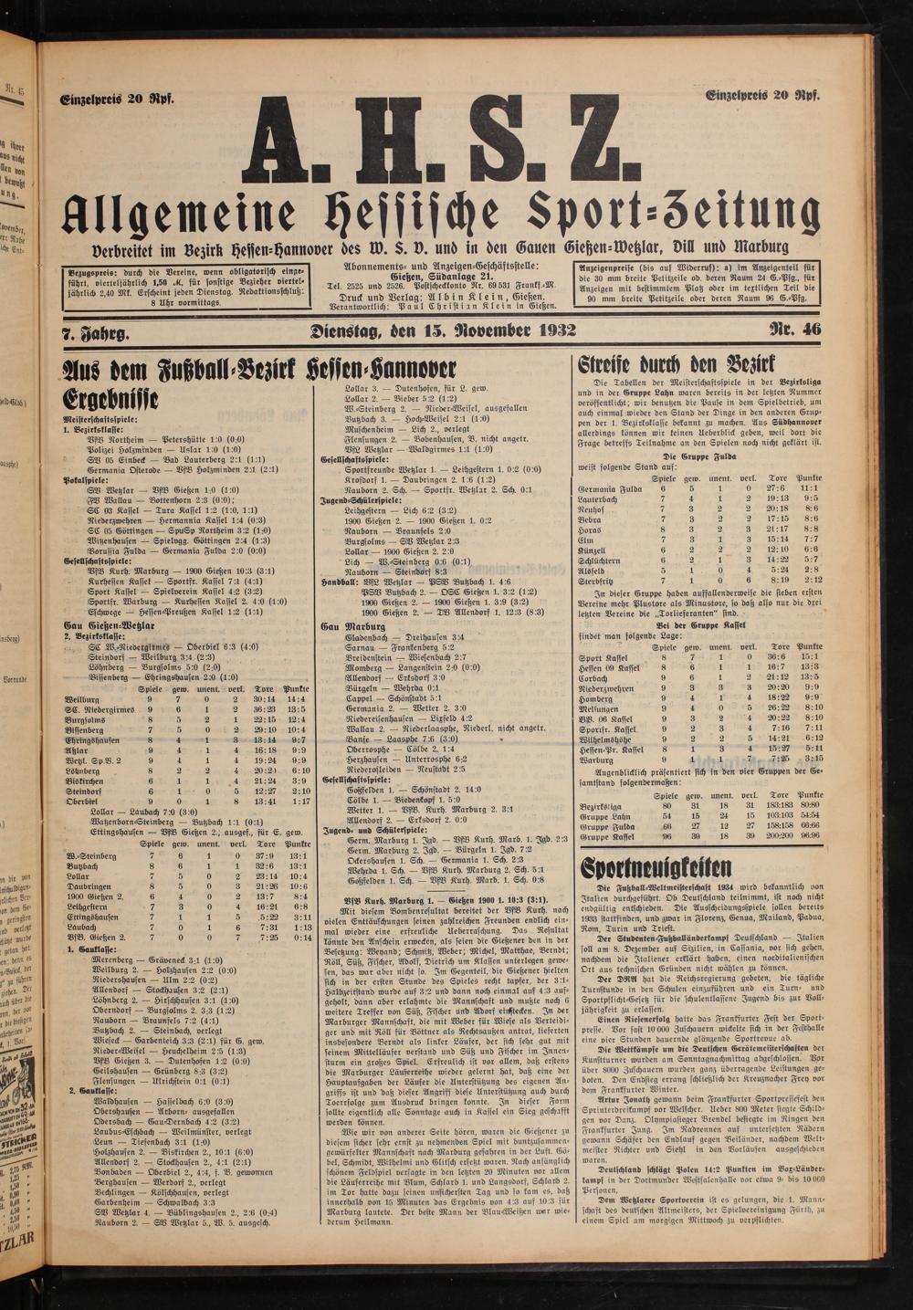 Allgemeine Hessische Sport-Zeitung. 1926-1933
