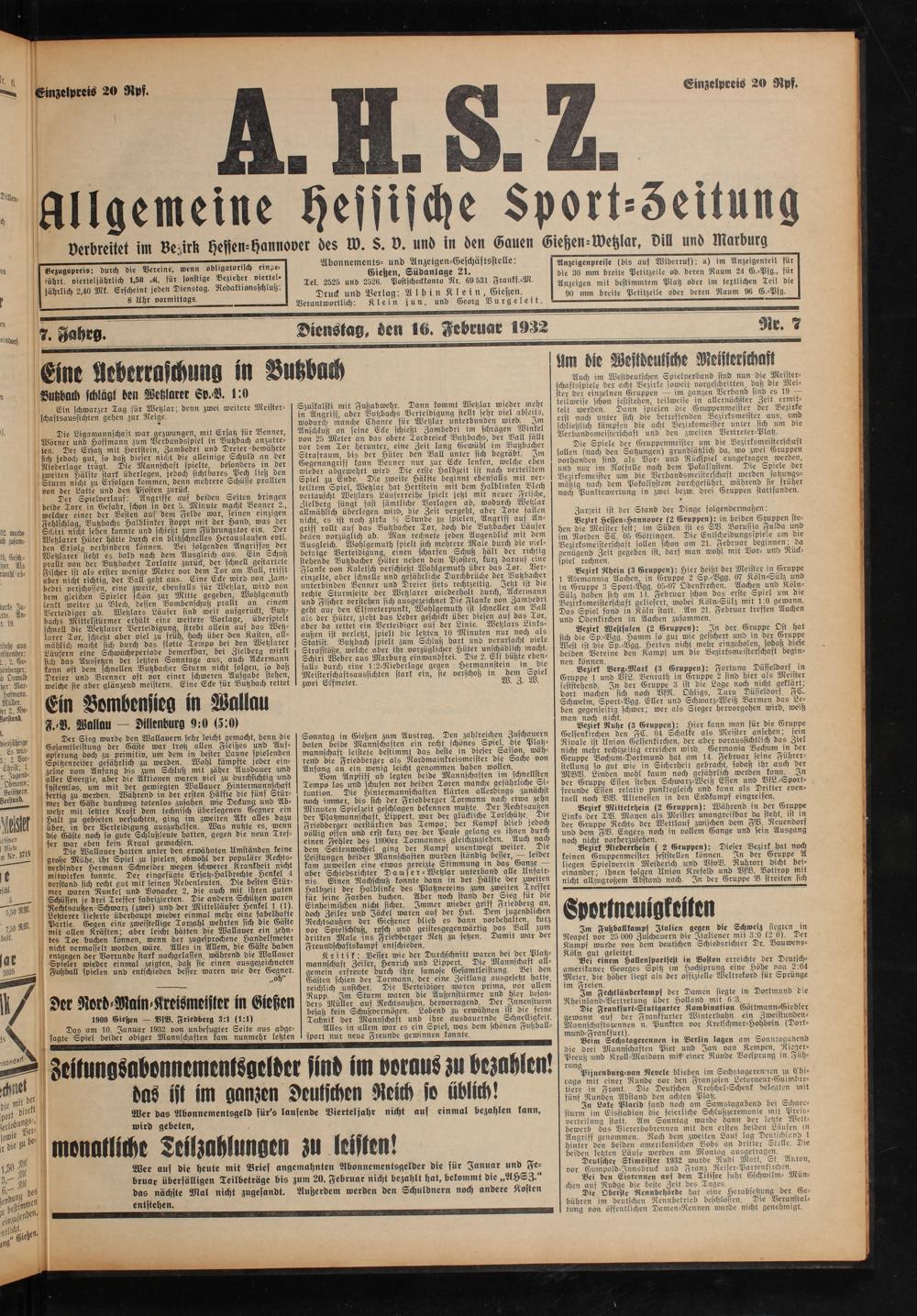 Allgemeine Hessische Sport-Zeitung. 1926-1933