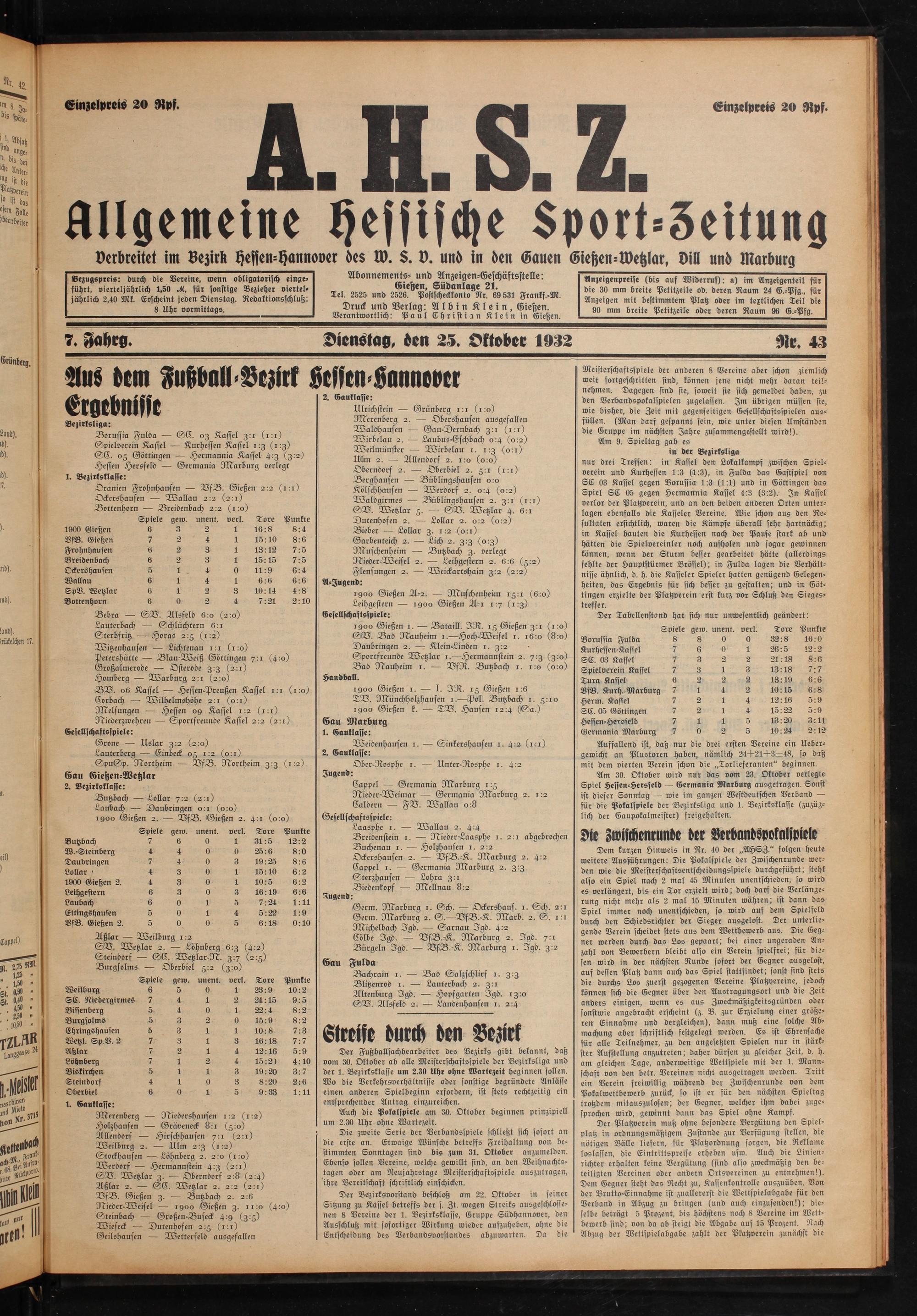Allgemeine Hessische Sport-Zeitung. 1926-1933