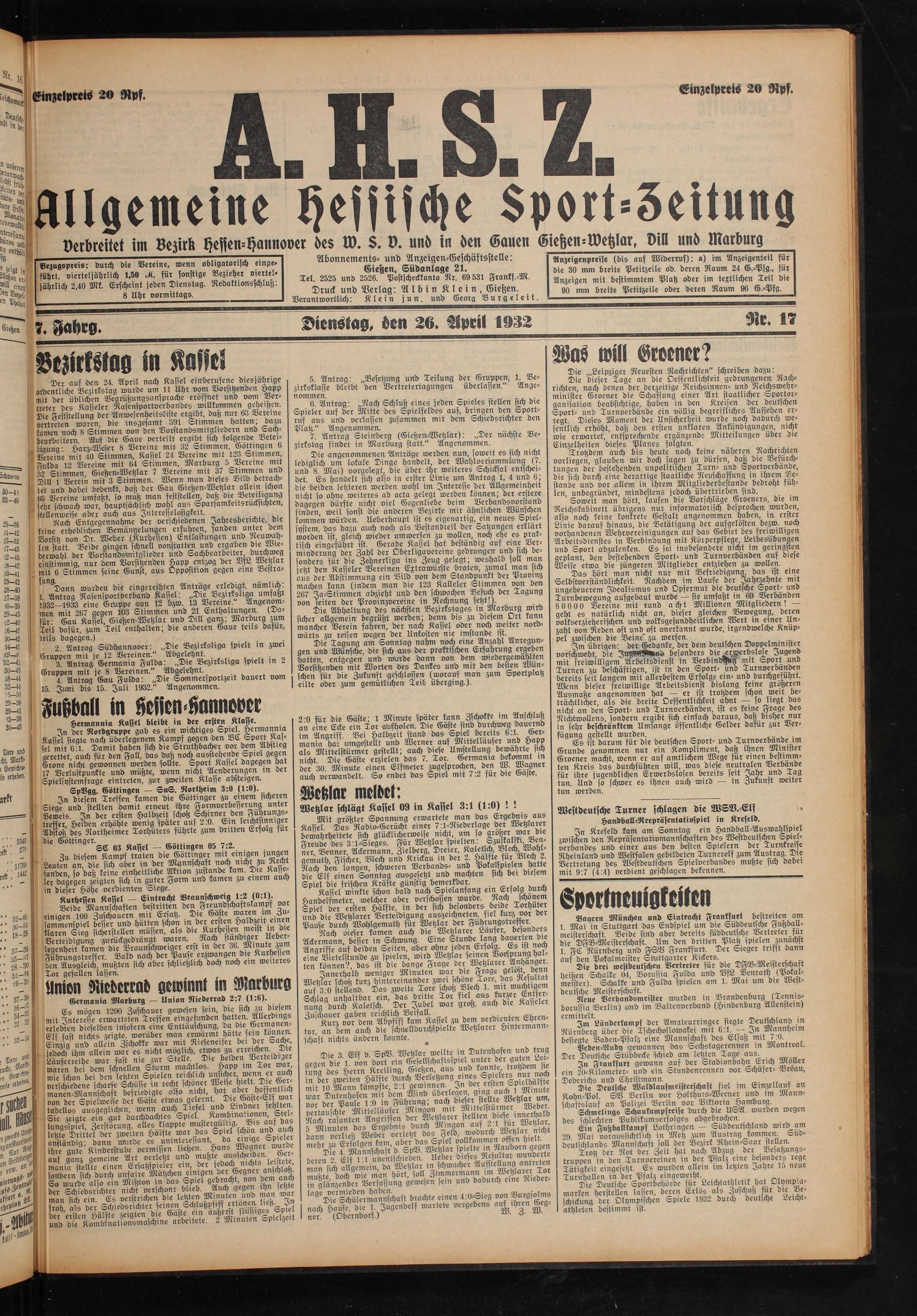 Allgemeine Hessische Sport-Zeitung. 1926-1933