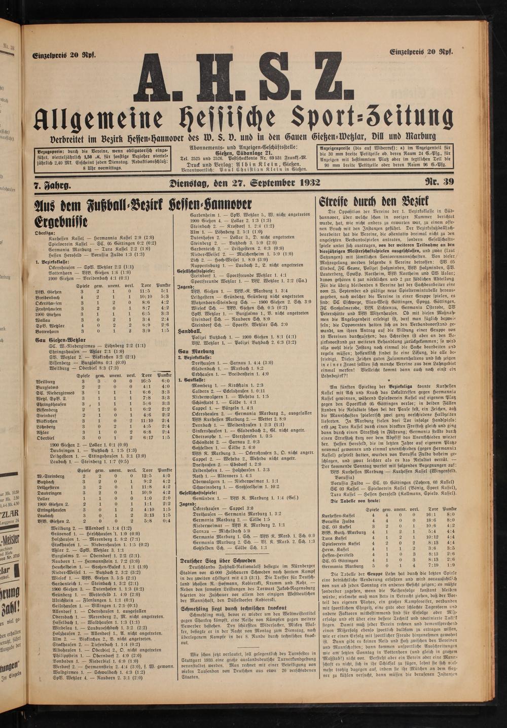 Allgemeine Hessische Sport-Zeitung. 1926-1933