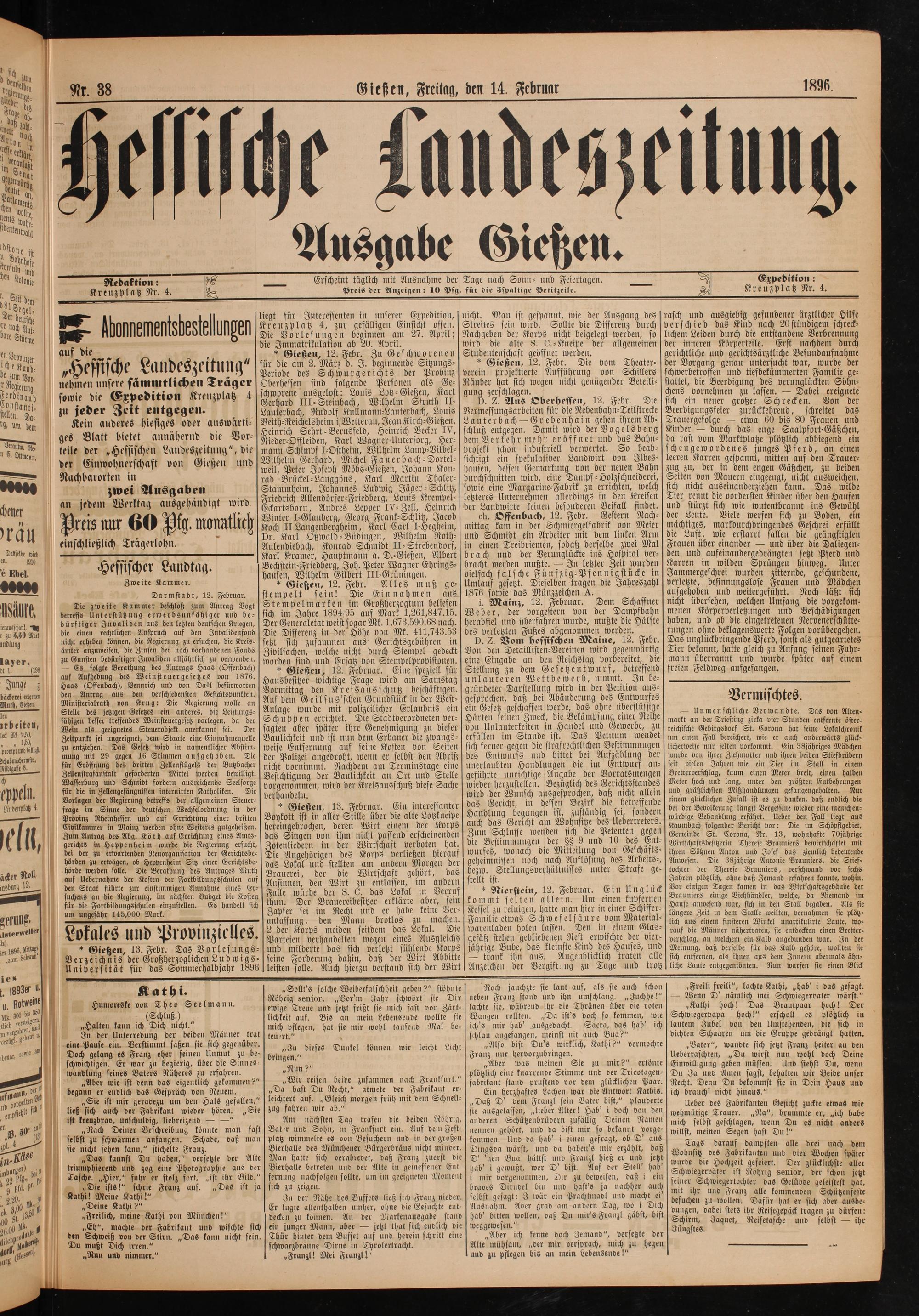 Hessische Landeszeitung. 1895-1896
