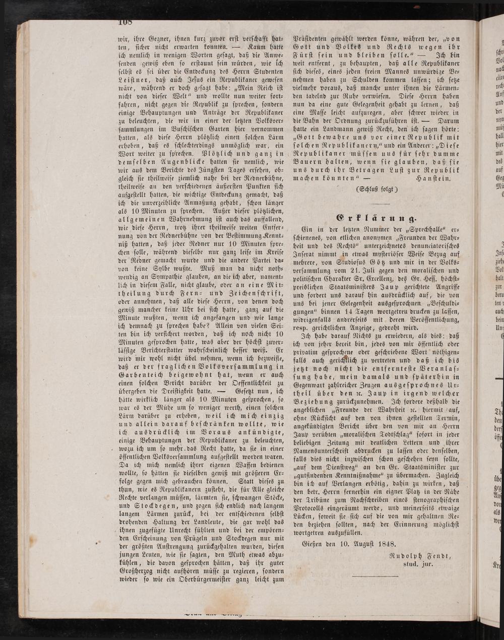 Sprechhalle für zeitgemäße Mittheilungen. 1848-1848