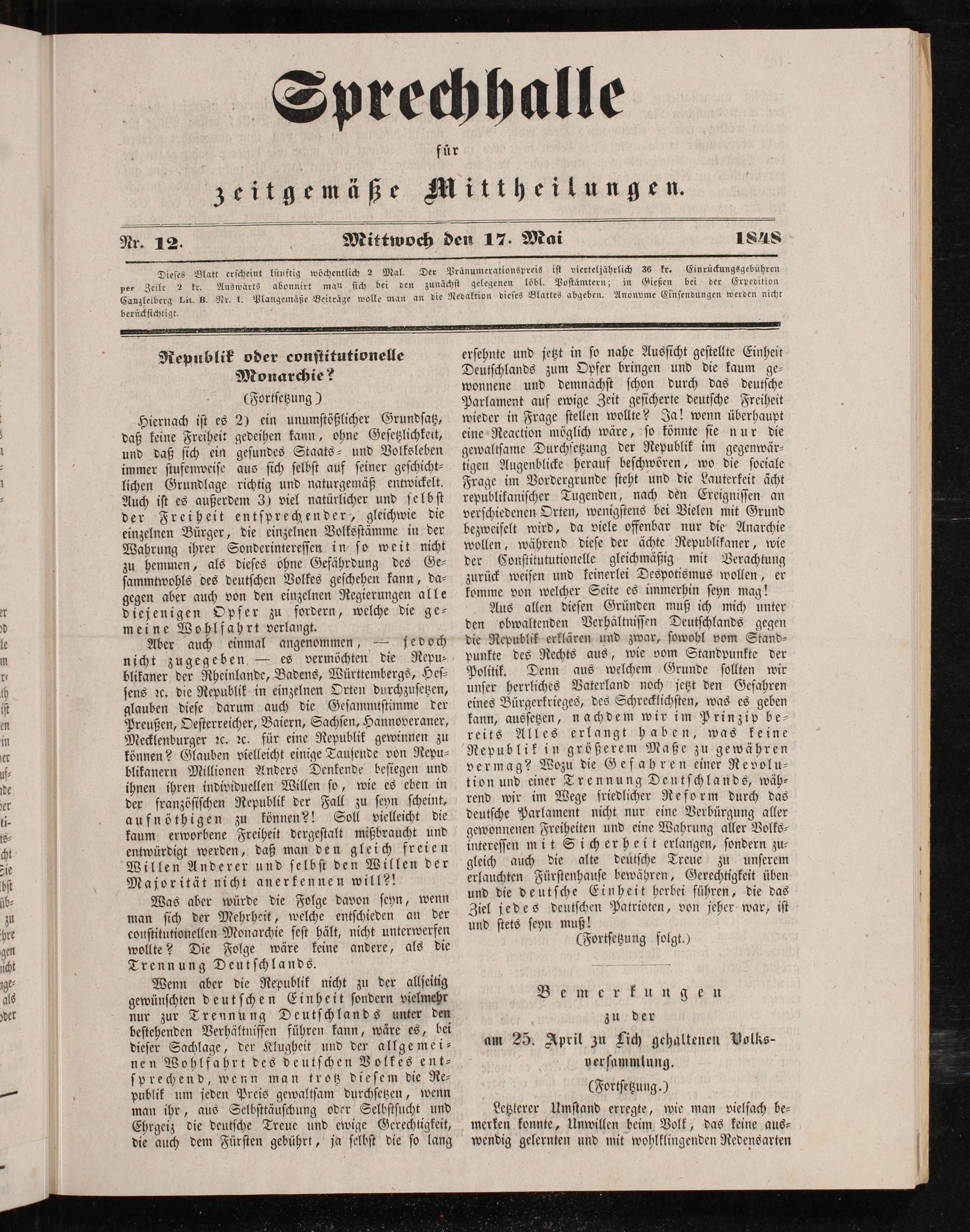 Sprechhalle für zeitgemäße Mittheilungen. 1848-1848