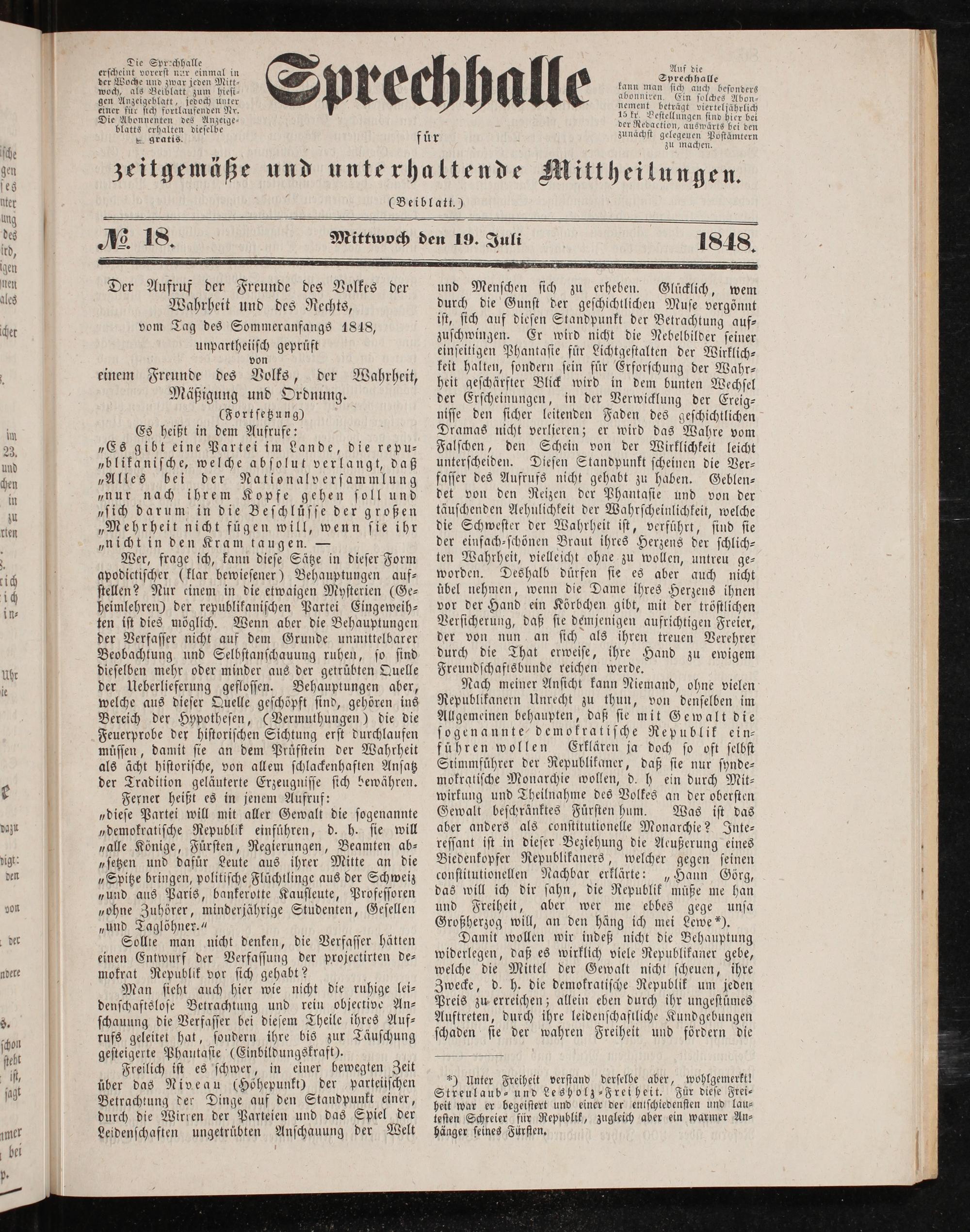 Sprechhalle für zeitgemäße Mittheilungen. 1848-1848
