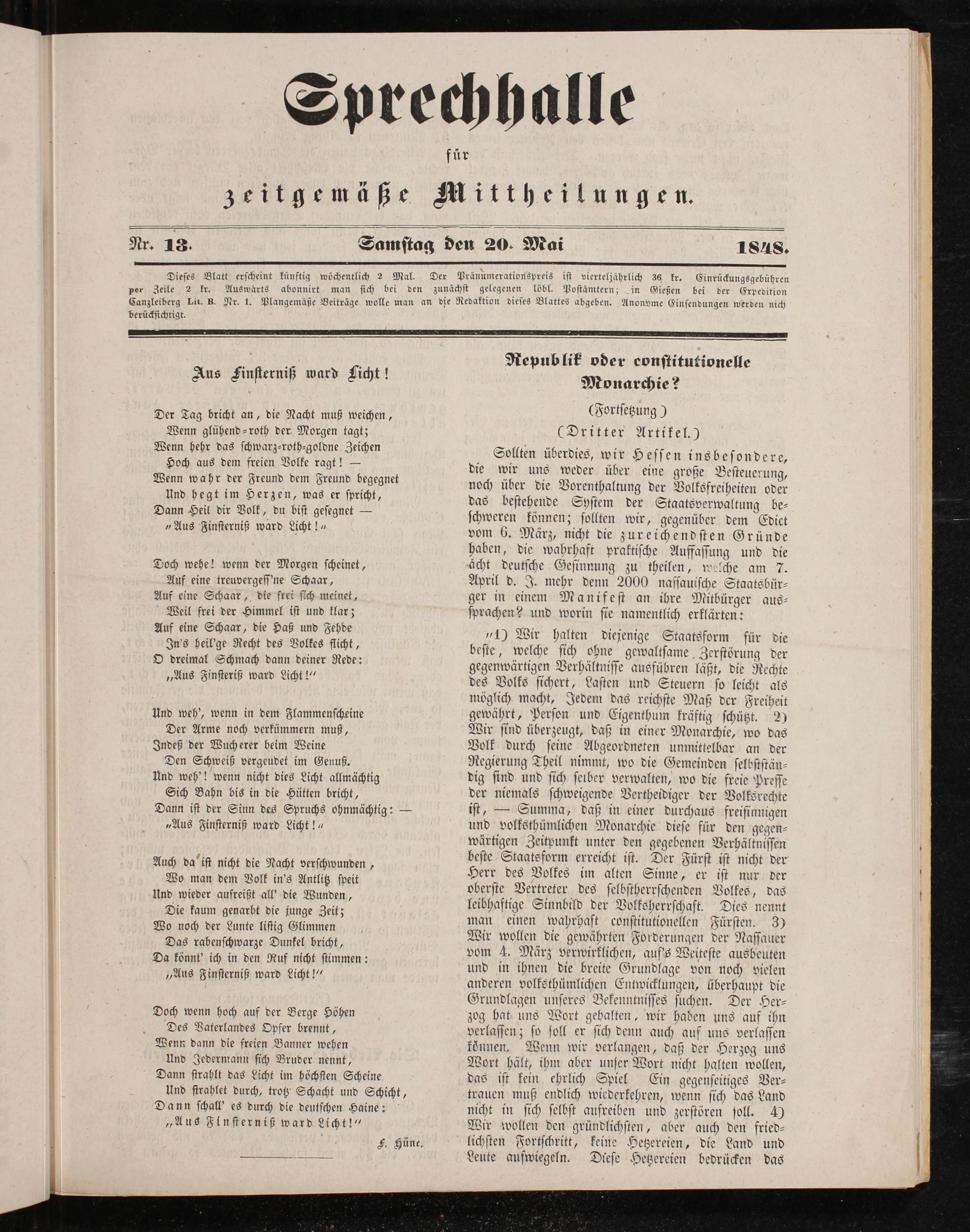 Sprechhalle für zeitgemäße Mittheilungen. 1848-1848