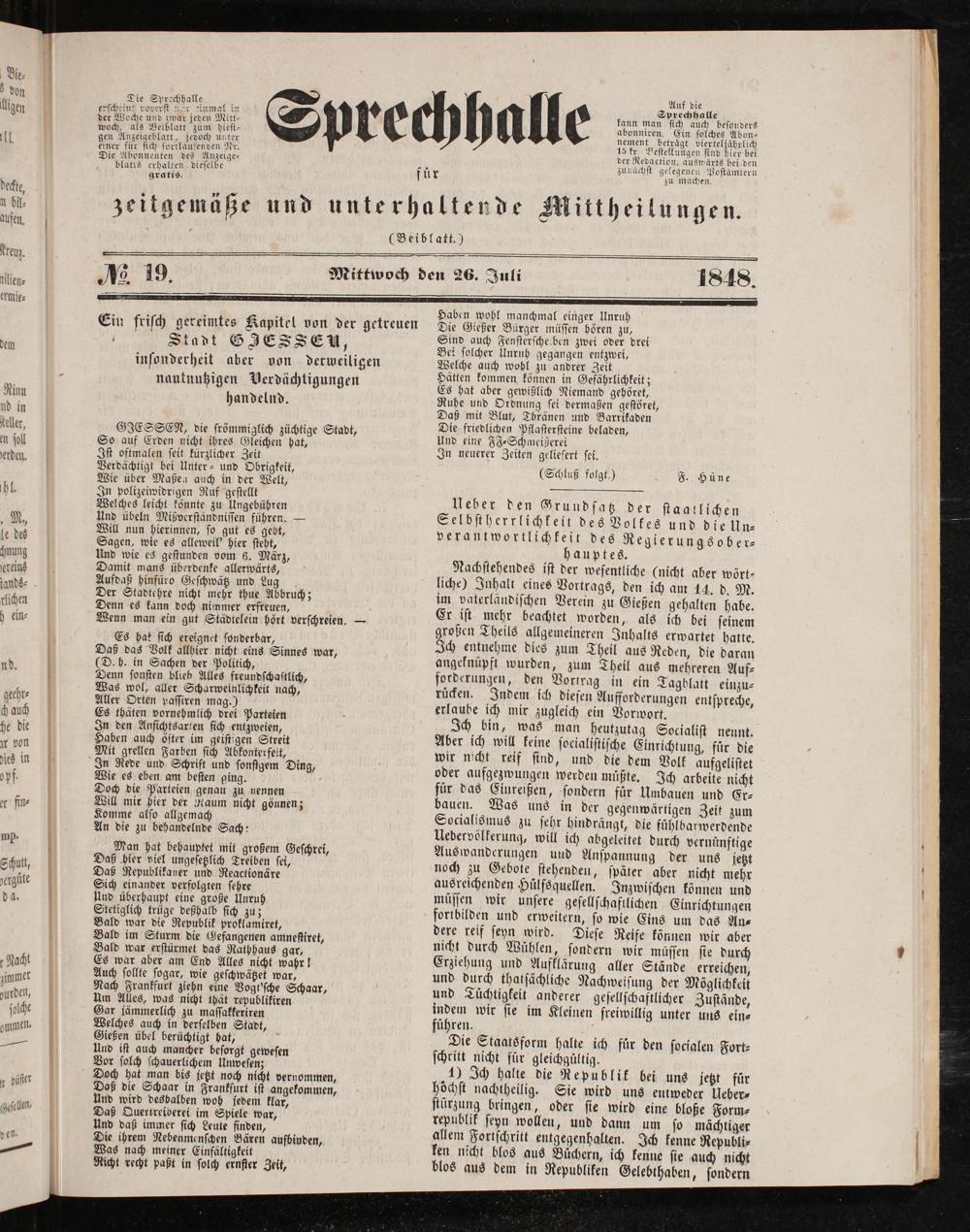 Sprechhalle für zeitgemäße Mittheilungen. 1848-1848