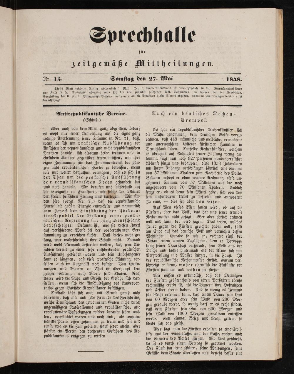 Sprechhalle für zeitgemäße Mittheilungen. 1848-1848