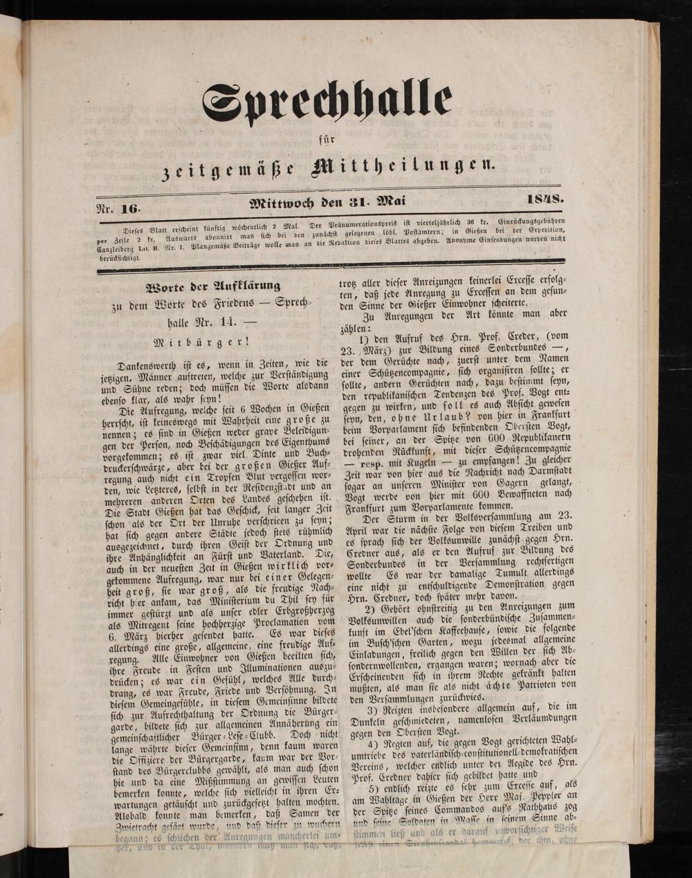 Sprechhalle für zeitgemäße Mittheilungen. 1848-1848