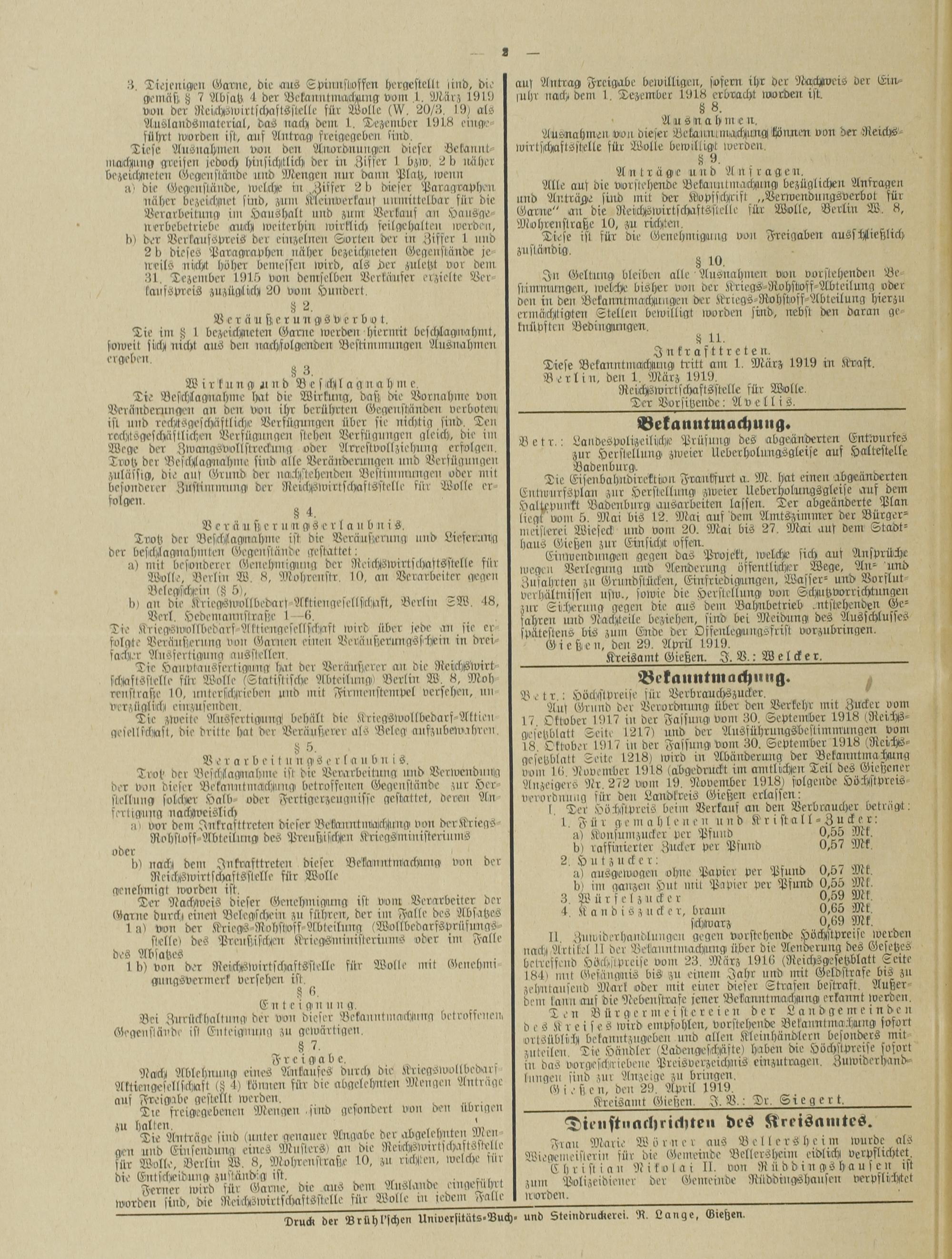 Amtsverkündigungsblatt für die Provinzialdirektion Oberhessen und der Kreisämter Gießen, Friedberg, Büdingen, Lauterbach, Schotten und Alsfeld. 1919-1937