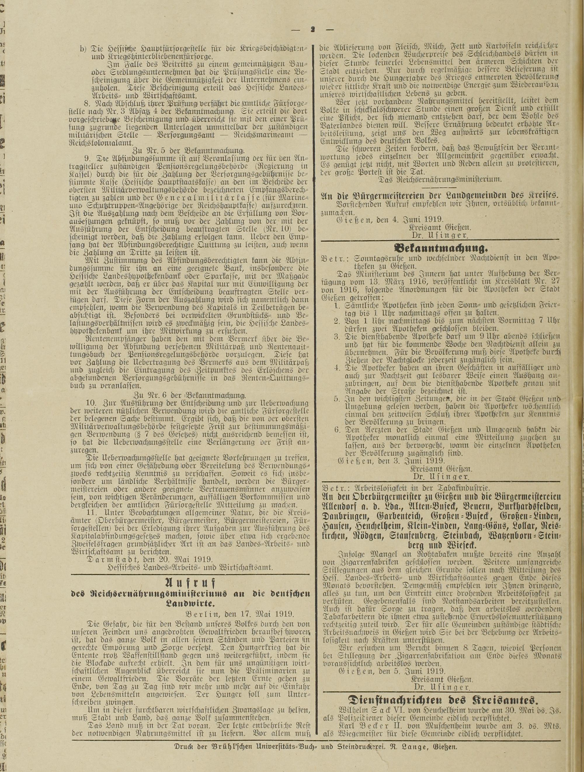 Amtsverkündigungsblatt für die Provinzialdirektion Oberhessen und der Kreisämter Gießen, Friedberg, Büdingen, Lauterbach, Schotten und Alsfeld. 1919-1937