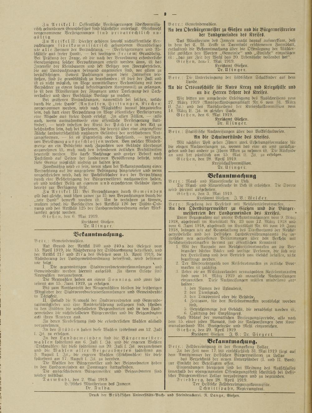 Amtsverkündigungsblatt für die Provinzialdirektion Oberhessen und der Kreisämter Gießen, Friedberg, Büdingen, Lauterbach, Schotten und Alsfeld. 1919-1937